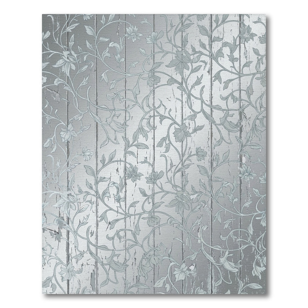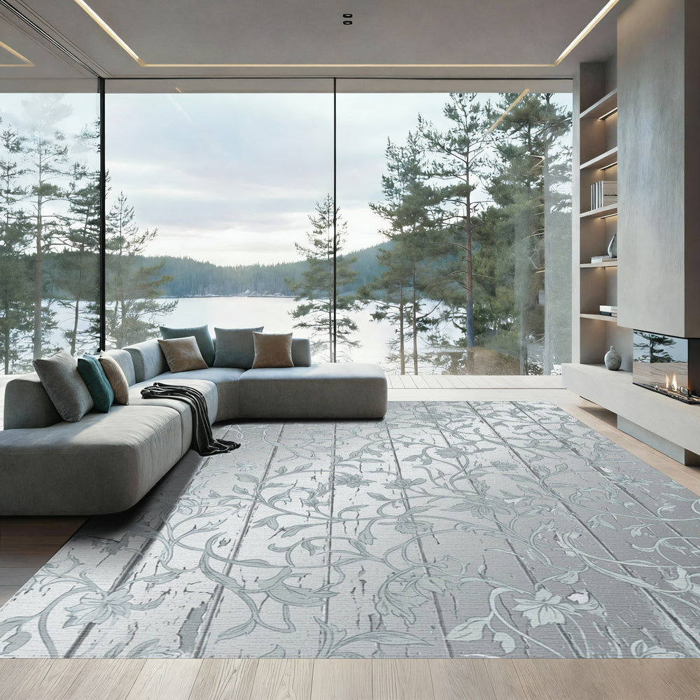 Distressed Silver Floral Vine Wood Grain Rug