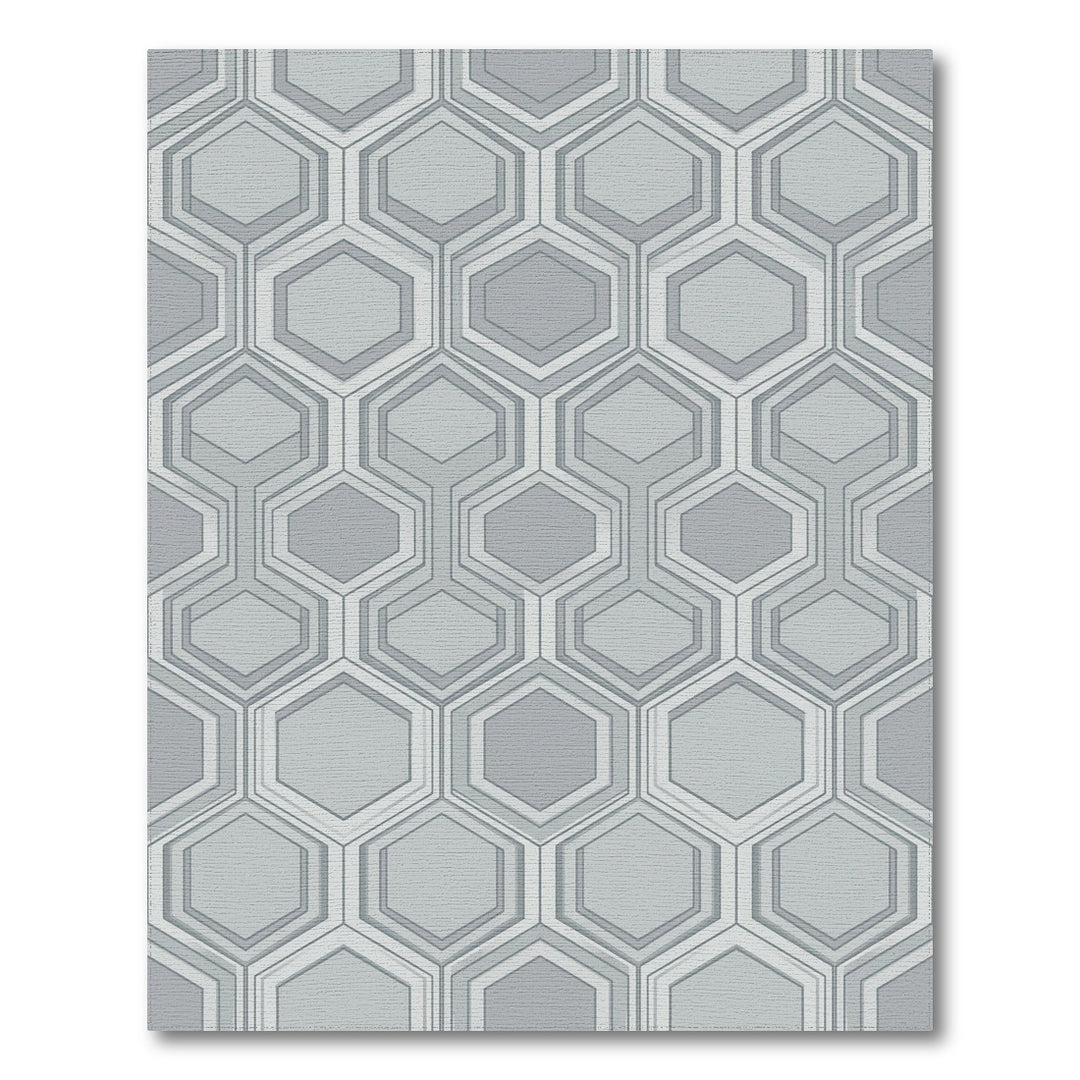 Cool Gray Layered Hexagon Grid Rug