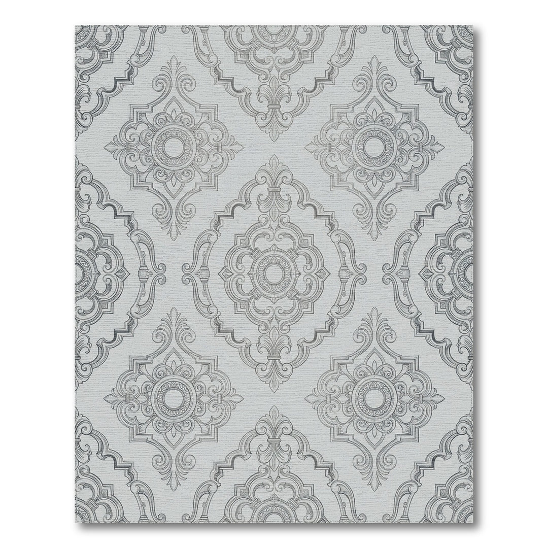 Ornate Gray Damask Medallion Rug