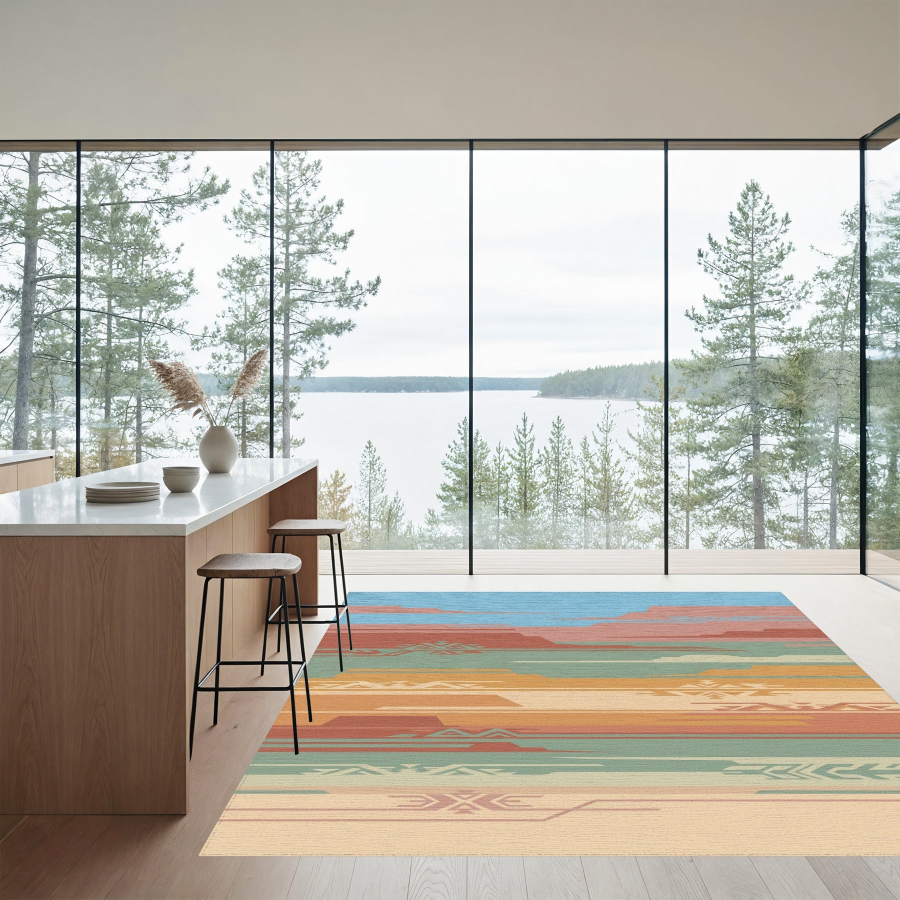 Flatwoven High Traffic Area Rug, Desert Layers Geometric Southwest Rug, Non Slip, Stain Resistant, Washable Area Rugs for Living Room, Bedroom Overview: