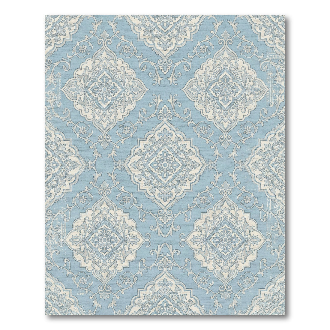 Flatwoven High Traffic Area Rug, Light Blue Vintage Damask Medallion Rug, Non Slip, Stain Resistant, Washable Area Rugs for Living Room, Bedroom Overview: