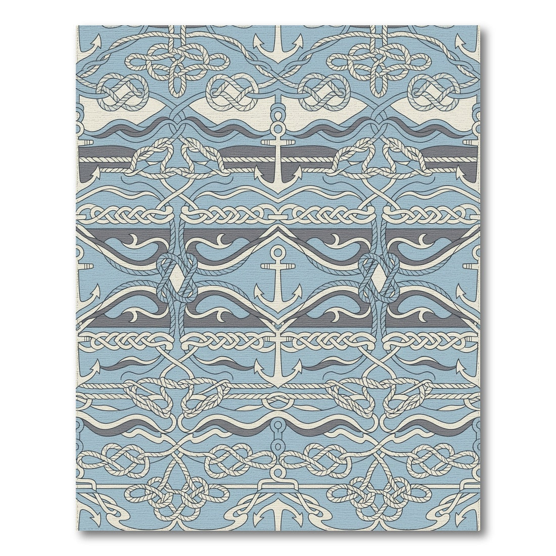 Flatwoven High Traffic Area Rug, Nautical Rope Anchor Waves Blue Rug, Non Slip, Stain Resistant, Washable Area Rugs for Living Room, Bedroom Overview: