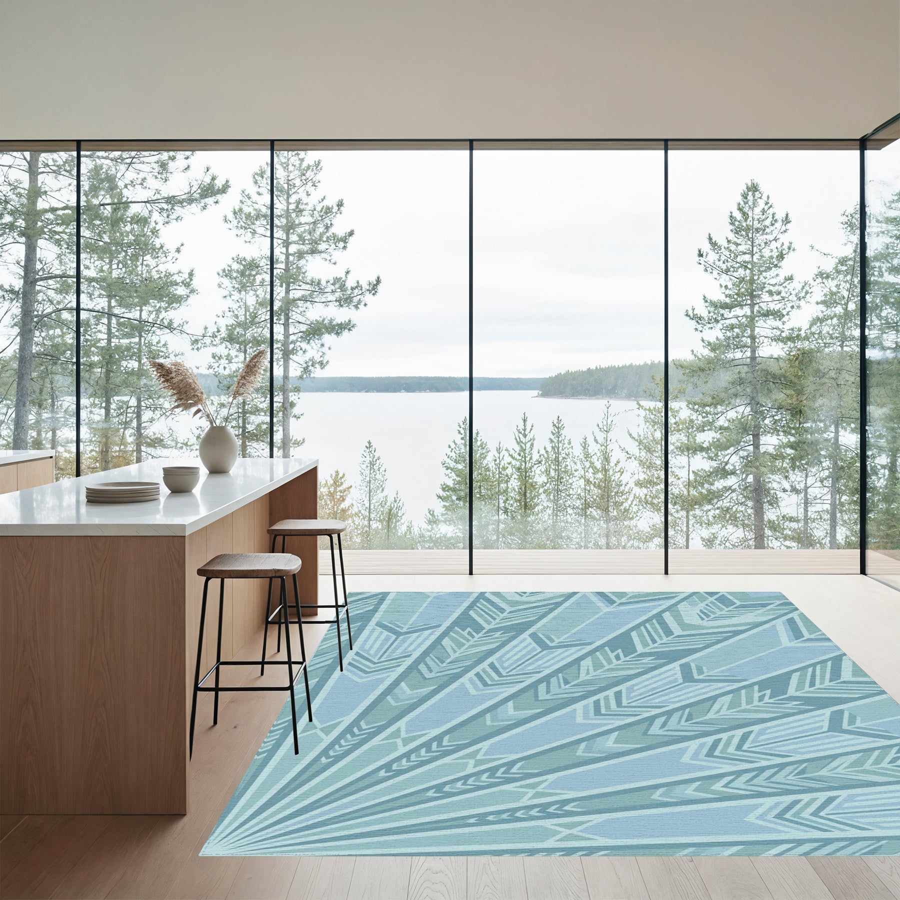 Flatwoven High Traffic Area Rug, Pale Blue Geometric Sunburst Rug, Non Slip, Stain Resistant, Washable Area Rugs for Living Room, Bedroom Overview: