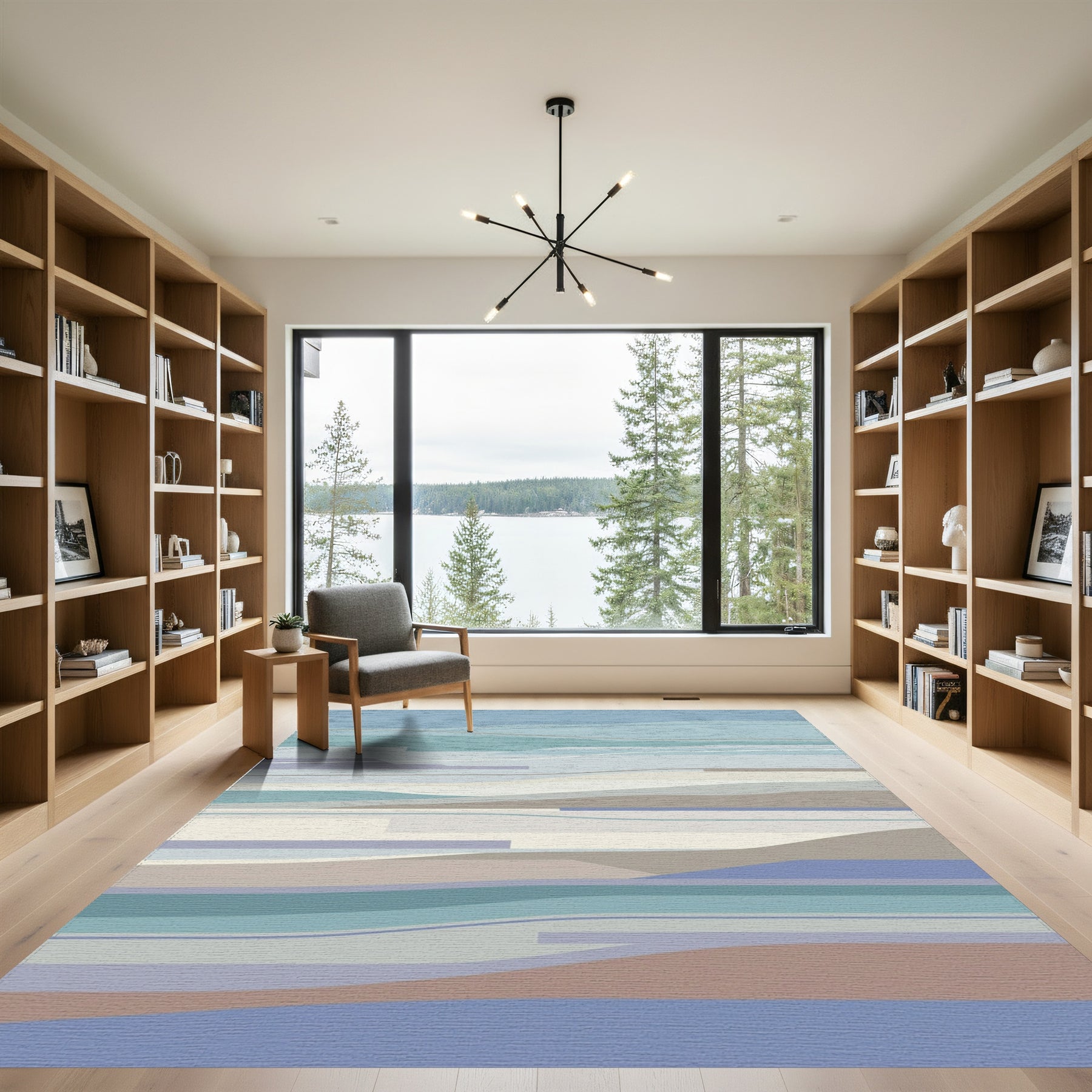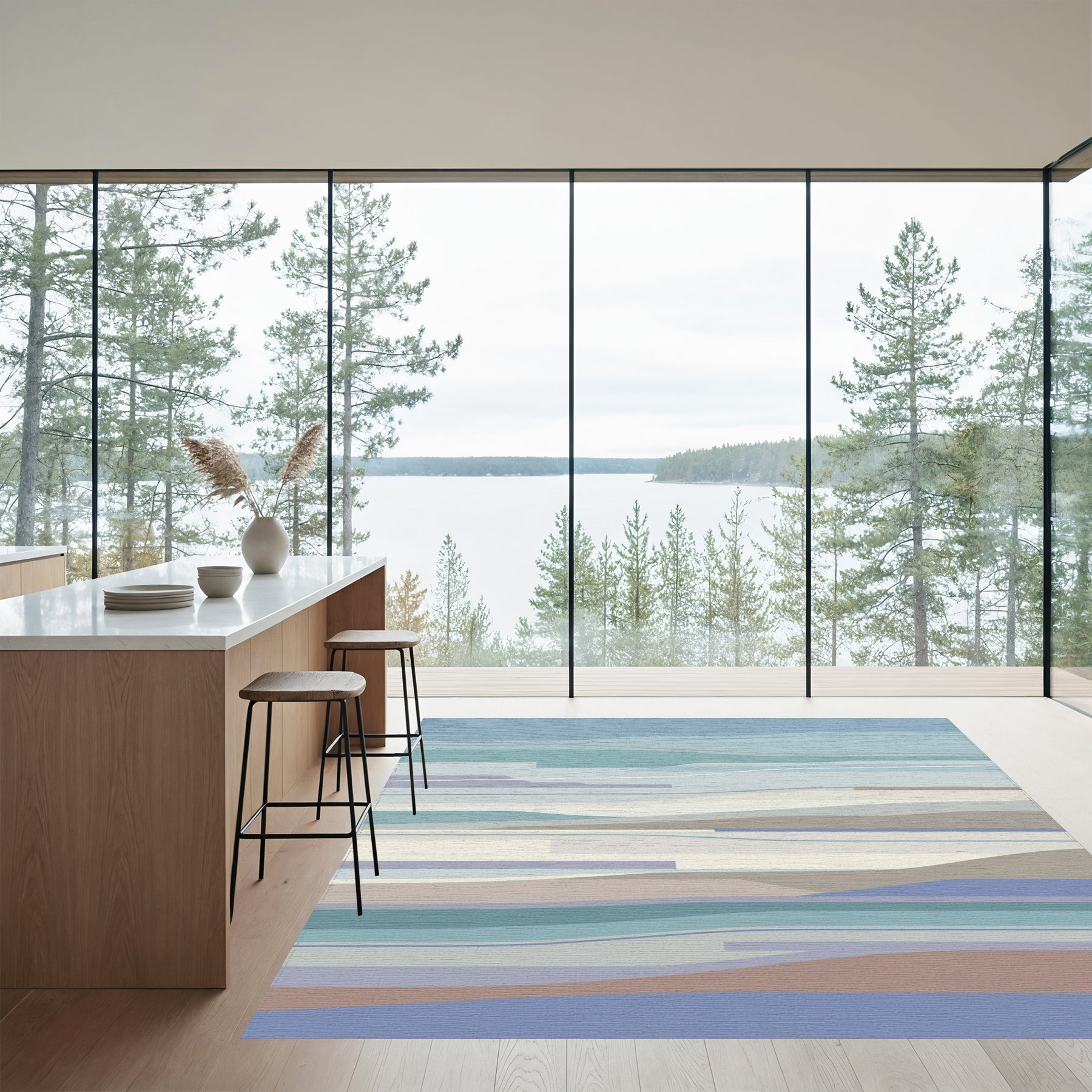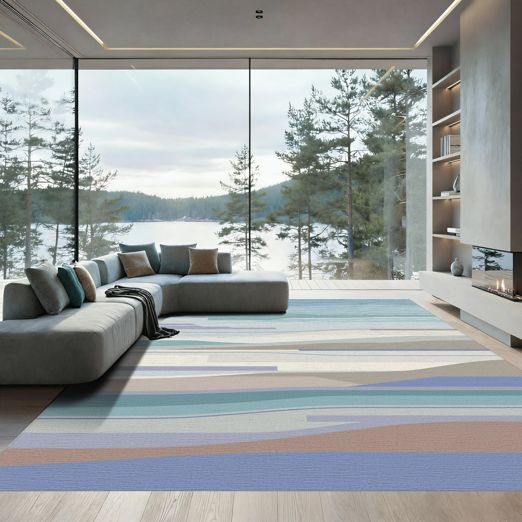 Flatwoven High Traffic Area Rug, Serene Blue Lavender Abstract Waves Rug, Non Slip, Stain Resistant, Washable Area Rugs for Living Room, Bedroom Overview: