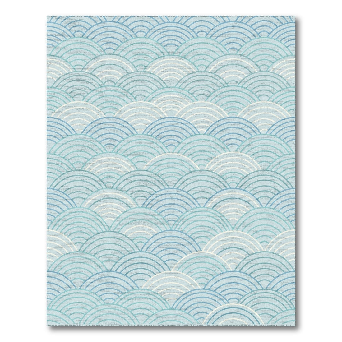 Flatwoven High Traffic Area Rug, Serene Blue Scalloped Wave Rug, Non Slip, Stain Resistant, Washable Area Rugs for Living Room, Bedroom Overview: