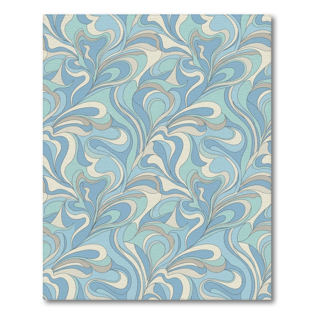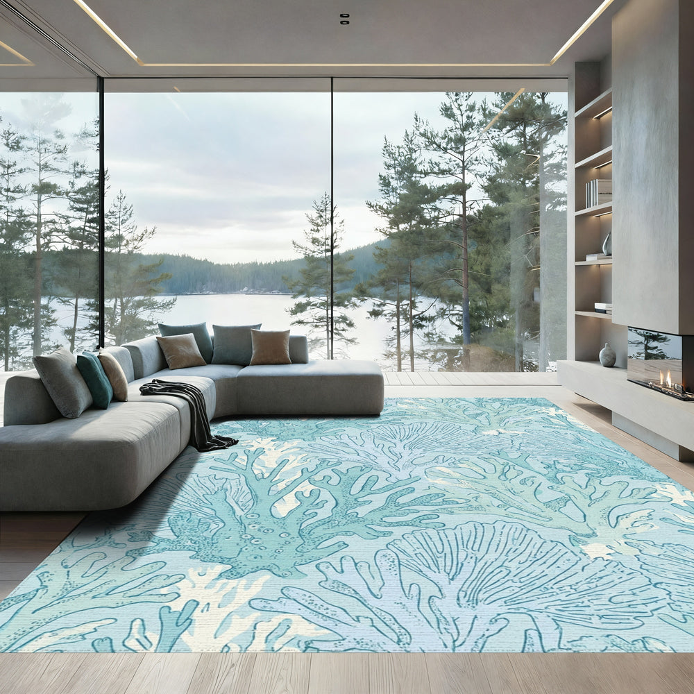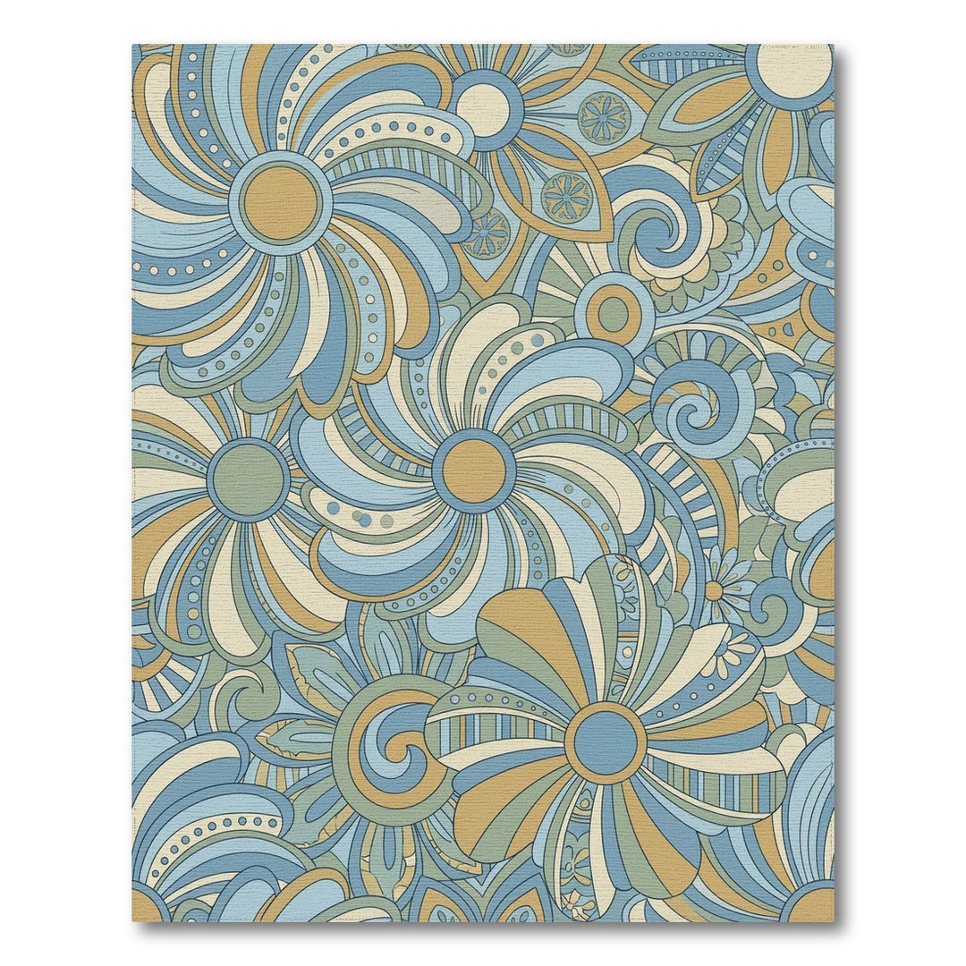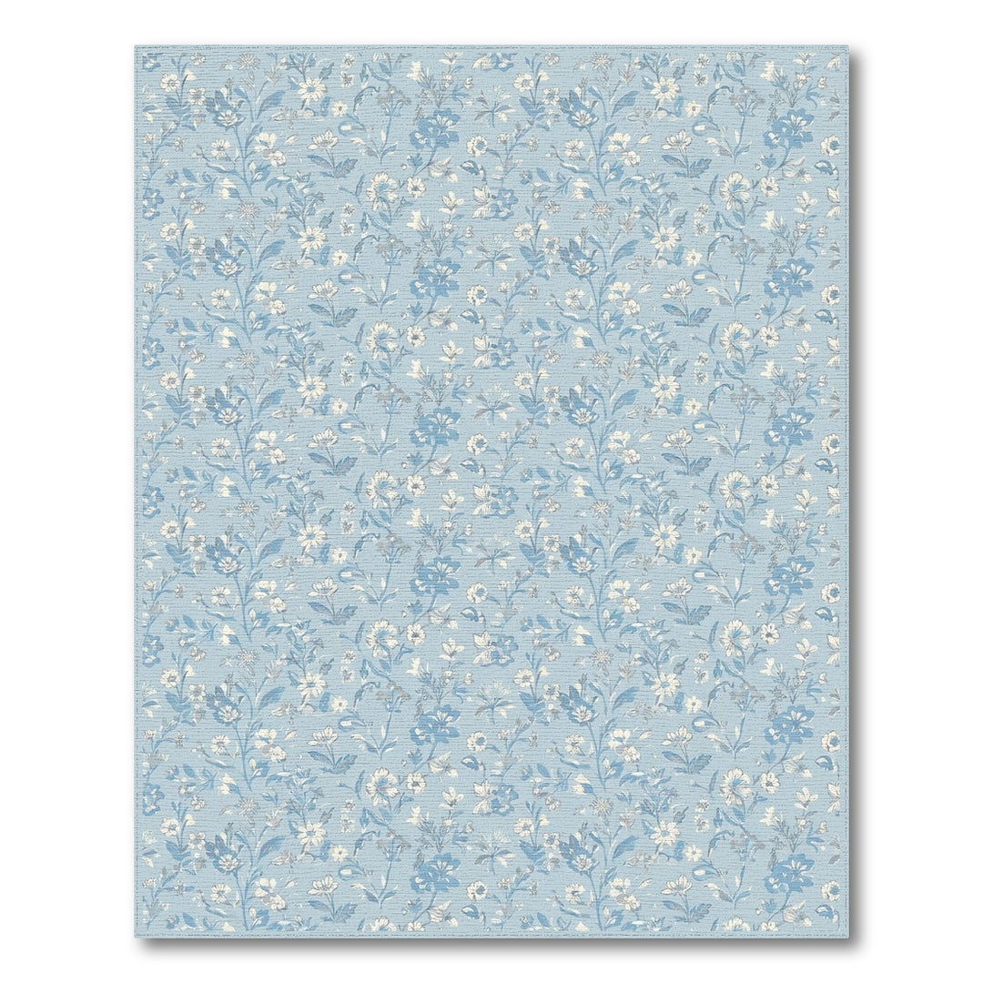 Serene Blue Cream Floral Watercolor Blossoms Rug
