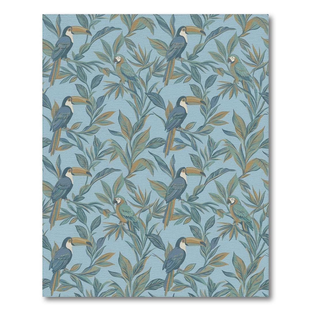 Serene Blue Pagodas Crane Blossom Collage Rug
