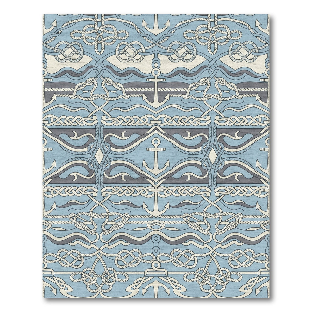 Coastal Blue Lighthouse Sailboat Scene Rug