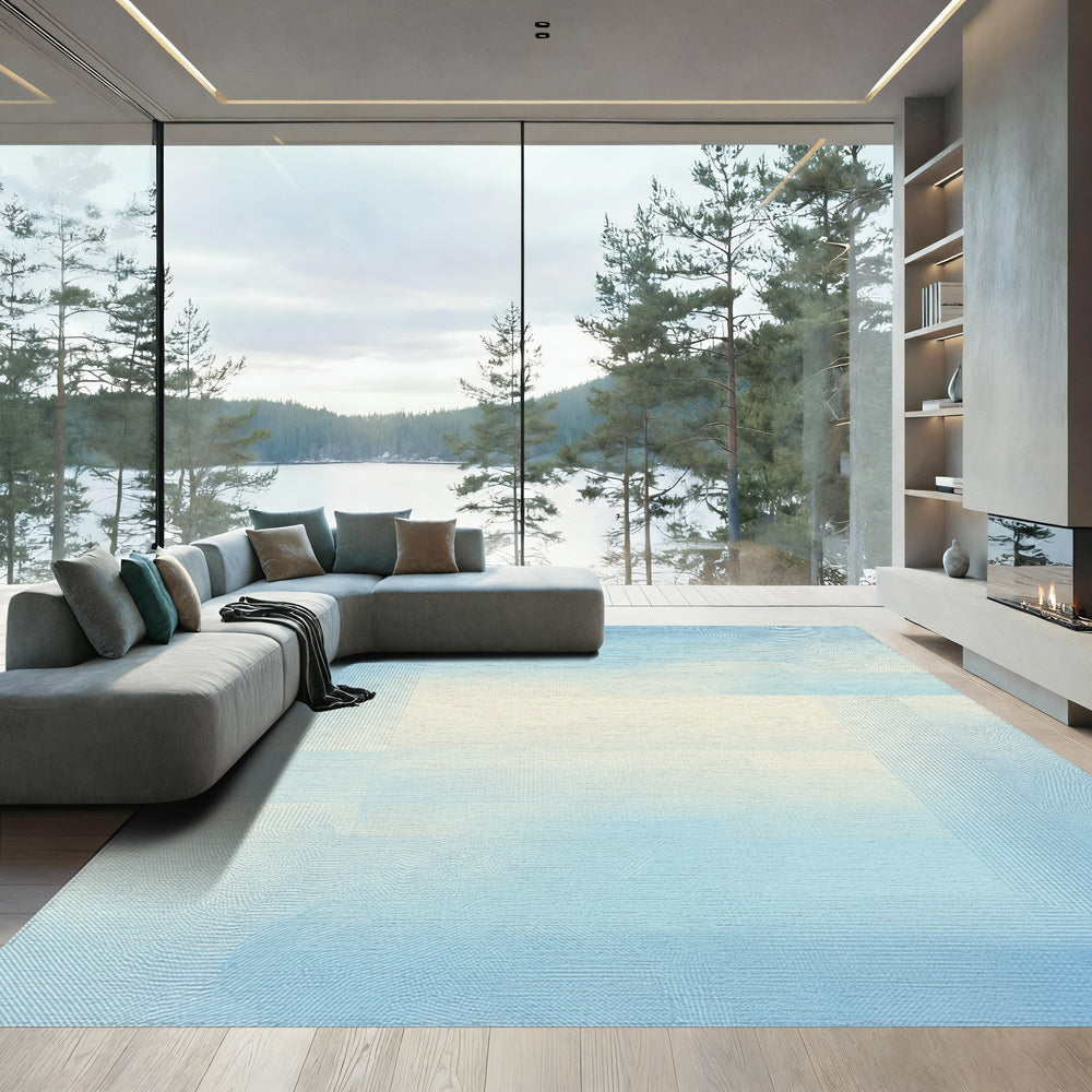 Soft Sky Blue Geometric Overlay Rug