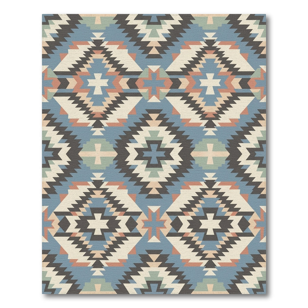 Southwestern Geometric Medallion Cream Blue Rug