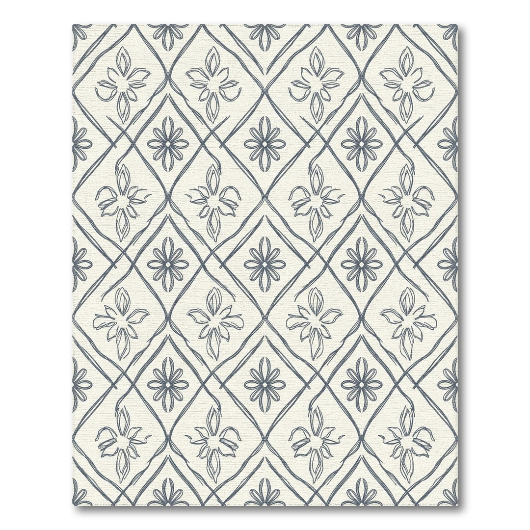 Gray Ivory Outline Floral Lattice Rug