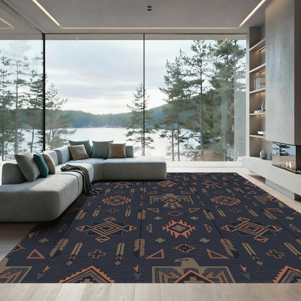 Navajo Blue Thunderbird Arrow Cloud Rug