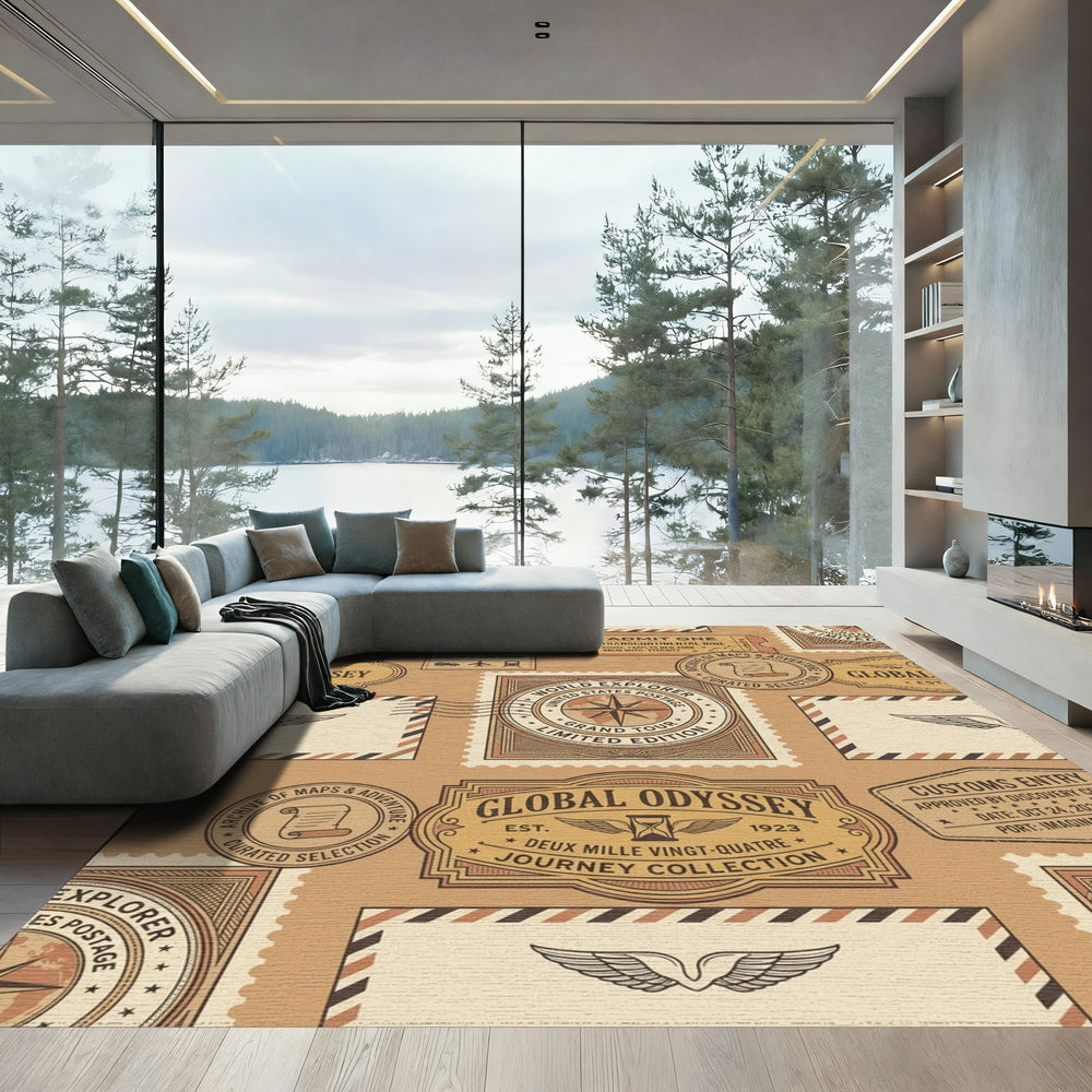 Golden Reindeer Snowflakes Forest Hearts Rug