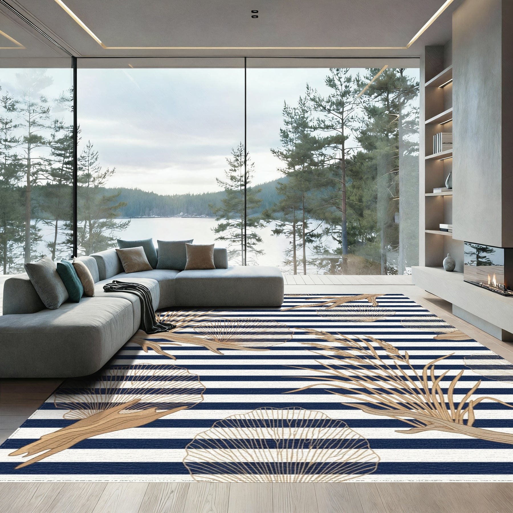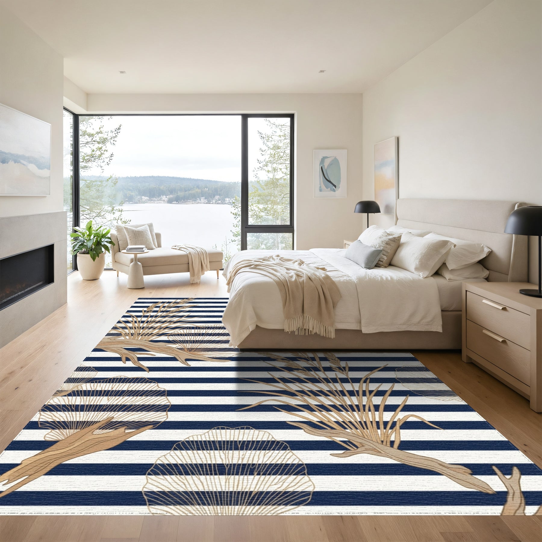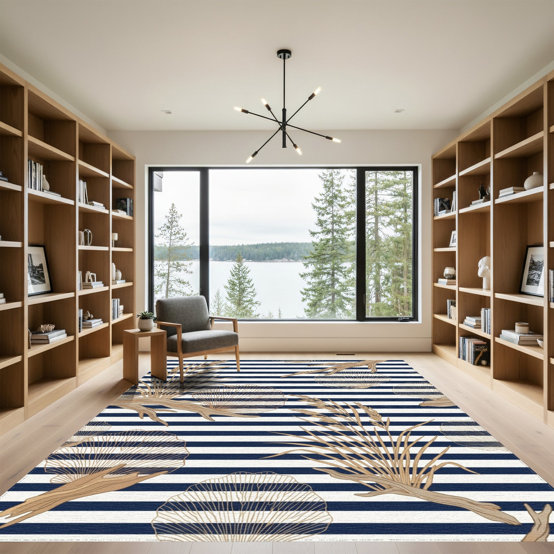 Flatwoven High Traffic Area Rug, Golden Reeds and Driftwood Stripes Rug, Non Slip, Stain Resistant, Washable Area Rugs for Living Room, Bedroom Overview: