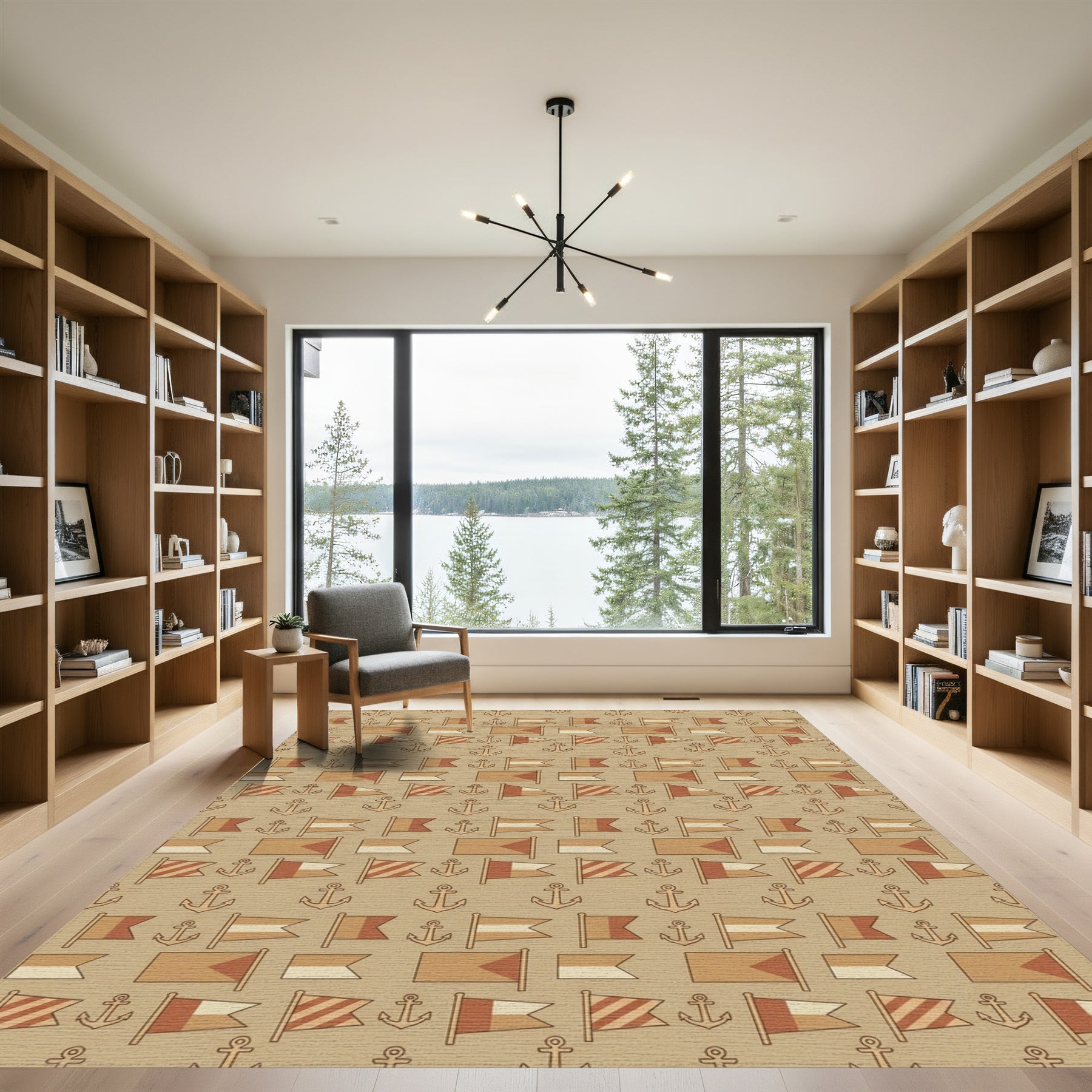 Flatwoven High Traffic Area Rug, Nautical Flags Anchors Brown Beige Rug, Non Slip, Stain Resistant, Washable Area Rugs for Living Room, Bedroom Overview: