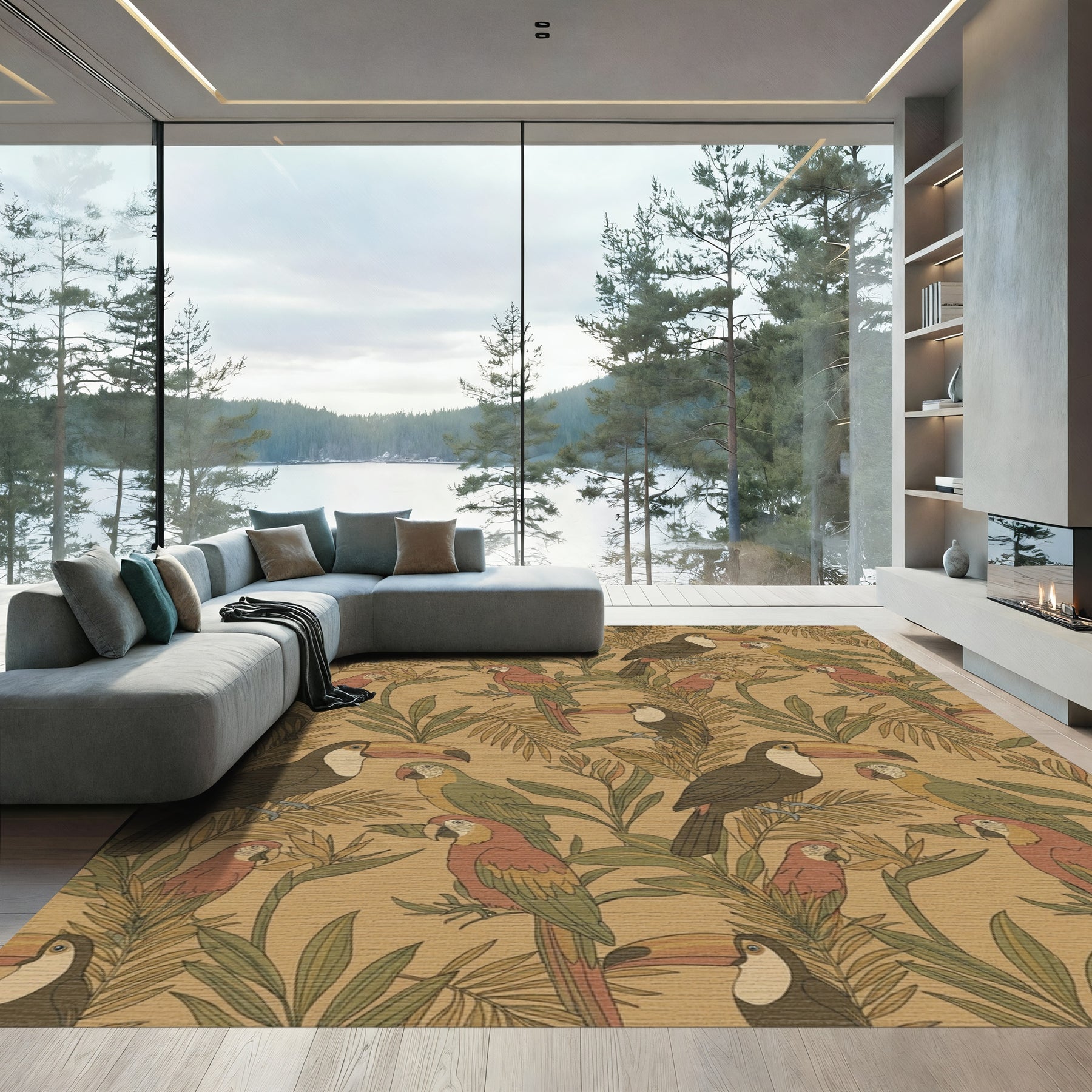 Flatwoven High Traffic Area Rug, Tropical Toucan Parrot Foliage Rug, Non Slip, Stain Resistant, Washable Area Rugs for Living Room, Bedroom Overview: