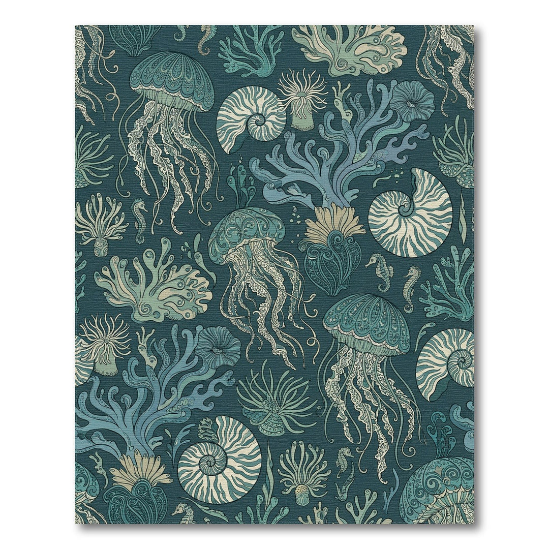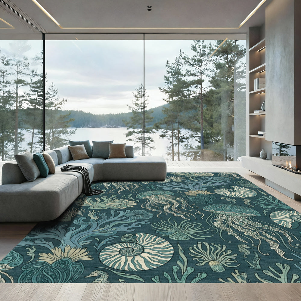 Oceanic Jellyfish Coral Nautilus Seascape Rug