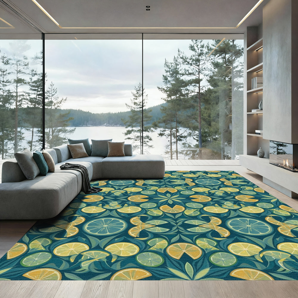 Citrus Medley Teal Botanical Fabric Rug