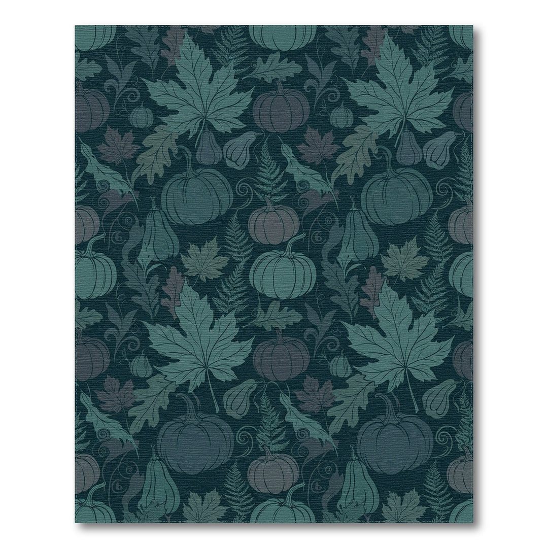 Autumnal Teal Pumpkin Leaf Medley Rug