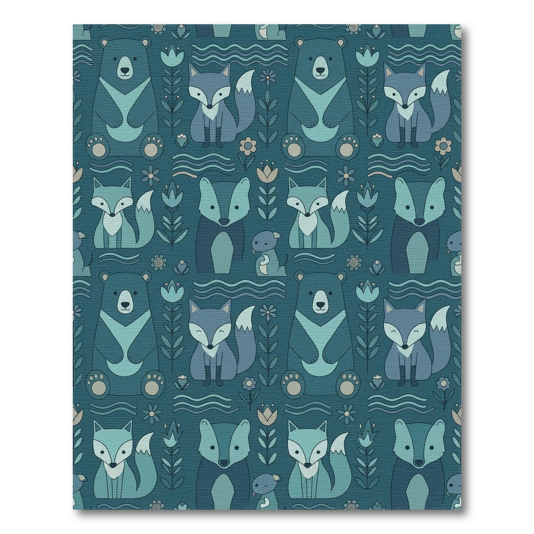 Teal Forest Animals Woodland Whimsical Rug