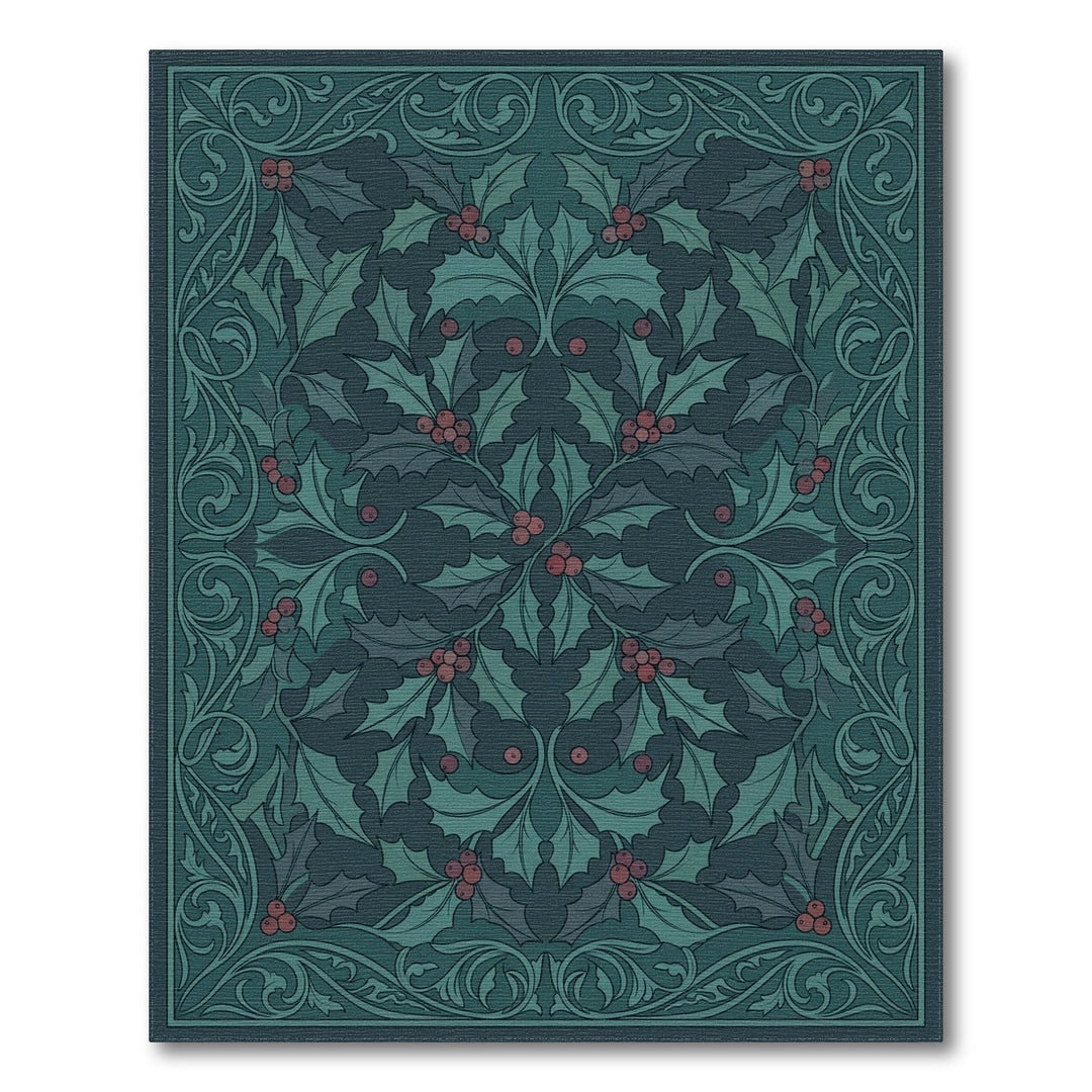 Dark Teal Holly Berry Garland Rug