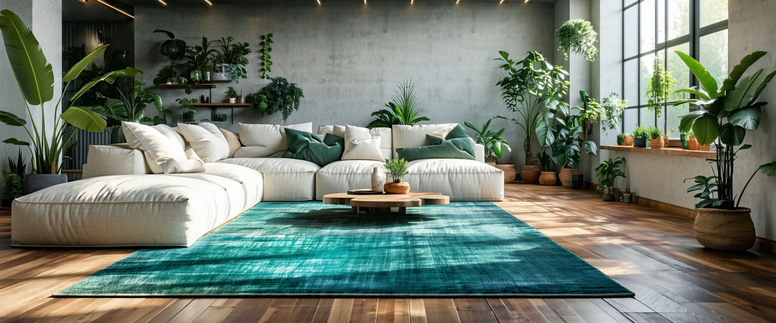 Teal Fern Botanical Woodland Rug