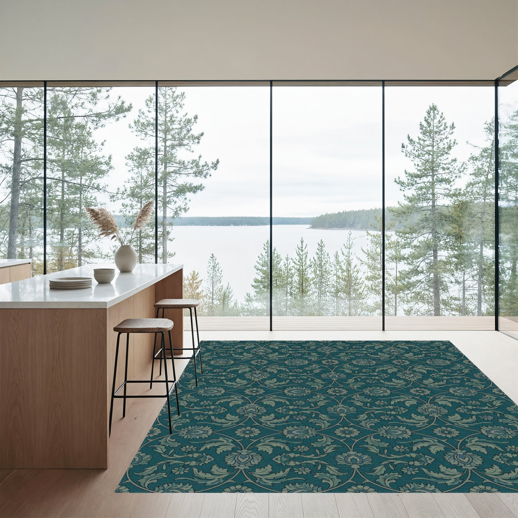 Flatwoven High Traffic Area Rug, Deep Teal Floral Lattice Medallion Rug, Non Slip, Stain Resistant, Washable Area Rugs for Living Room, Bedroom Overview: