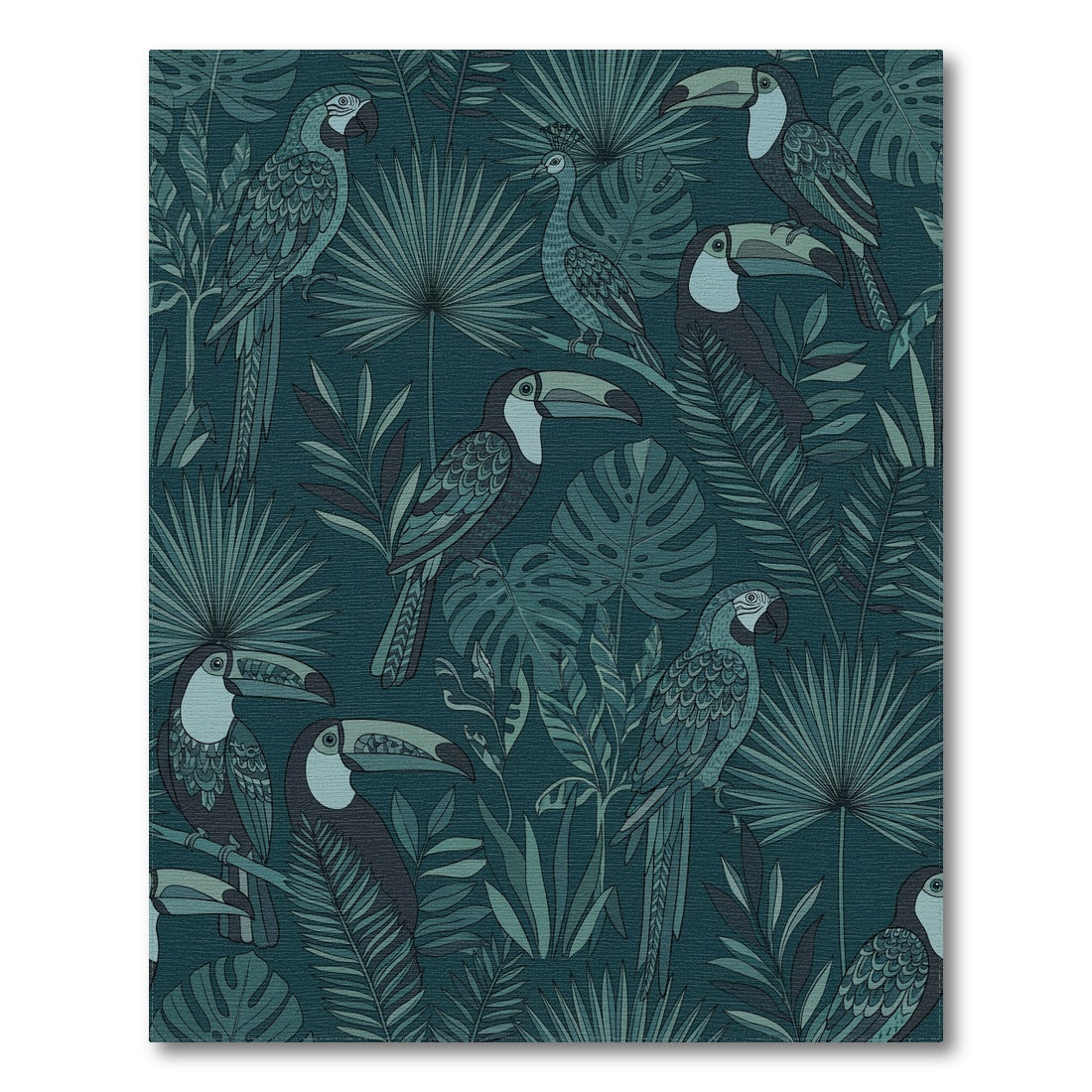 Flatwoven High Traffic Area Rug, Deep Teal Tropical Bird Foliage Rug, Non Slip, Stain Resistant, Washable Area Rugs for Living Room, Bedroom Overview: