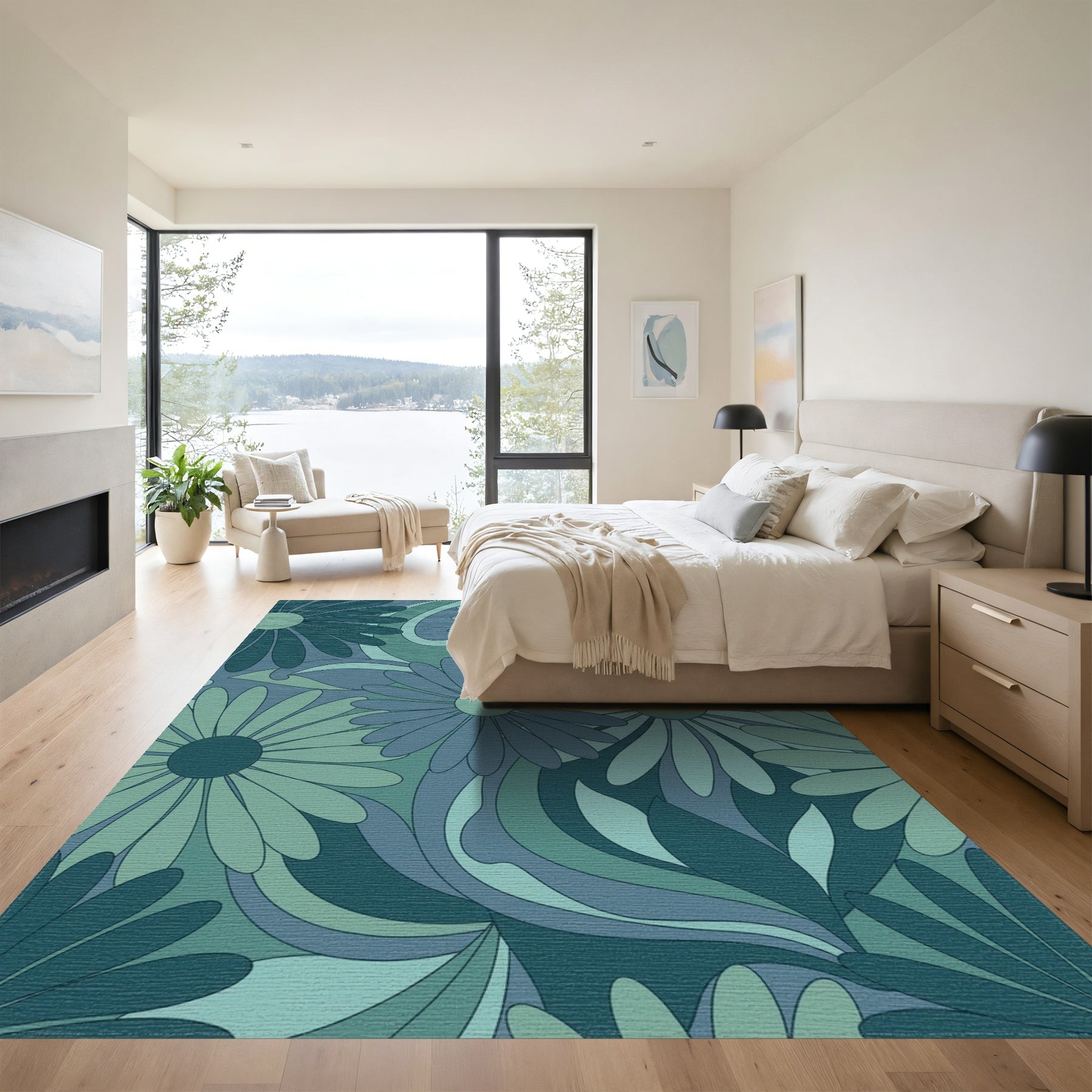 Flatwoven High Traffic Area Rug, Retro Blue Green Floral Swirl Rug, Non Slip, Stain Resistant, Washable Area Rugs for Living Room, Bedroom Overview: