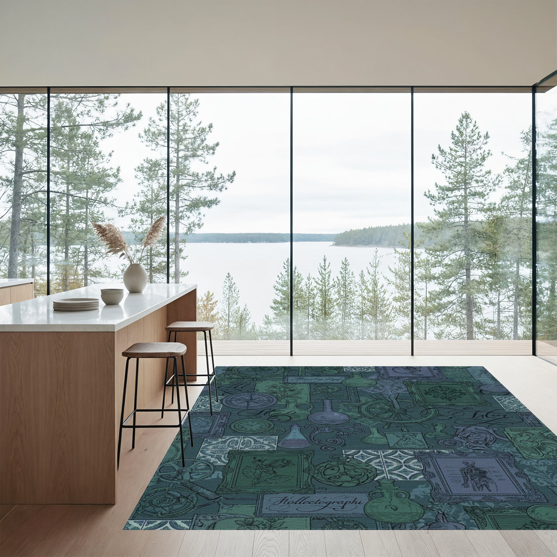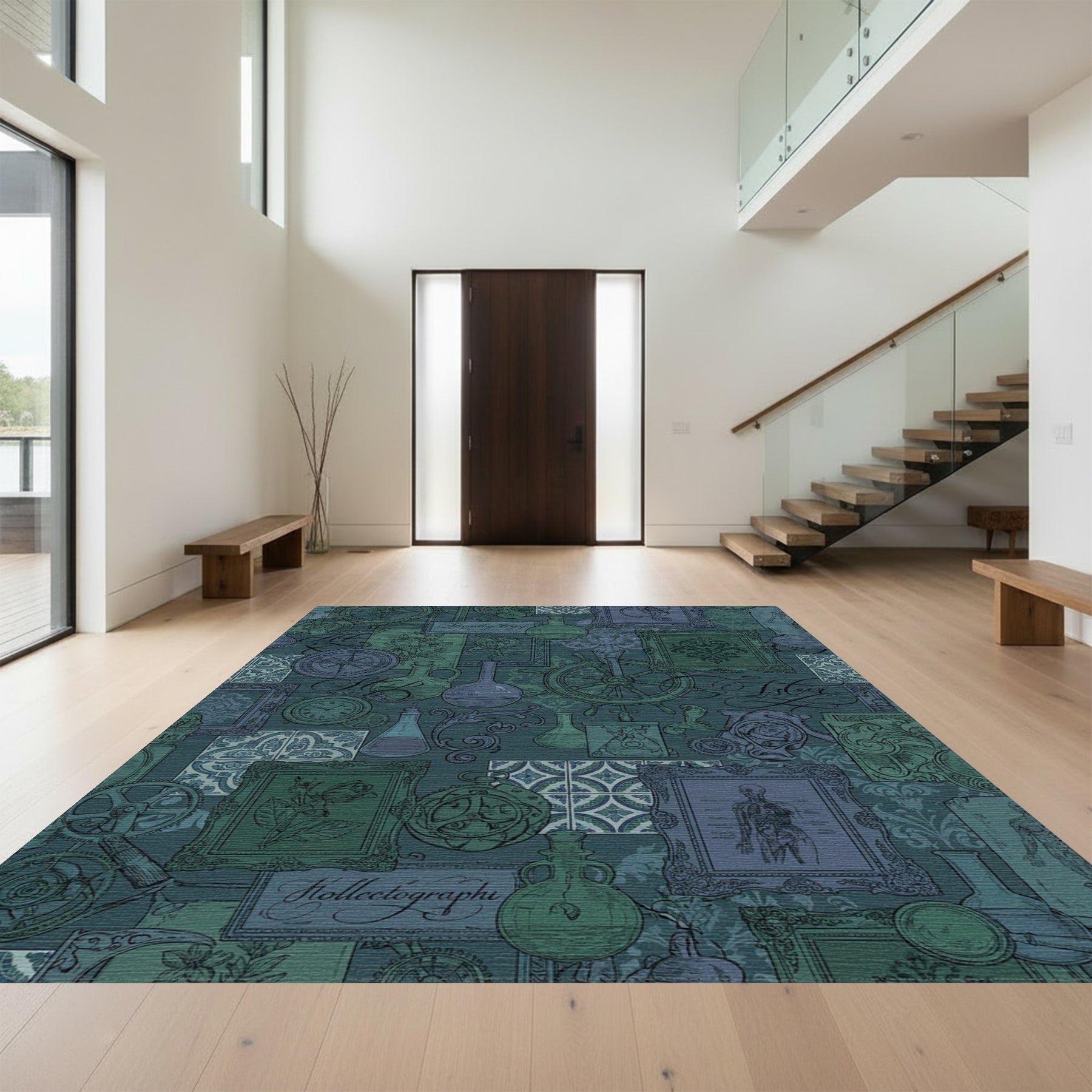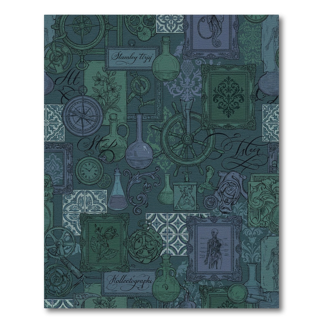 Flatwoven High Traffic Area Rug, Steampunk Scientific Collage Teal Rug, Non Slip, Stain Resistant, Washable Area Rugs for Living Room, Bedroom Overview: