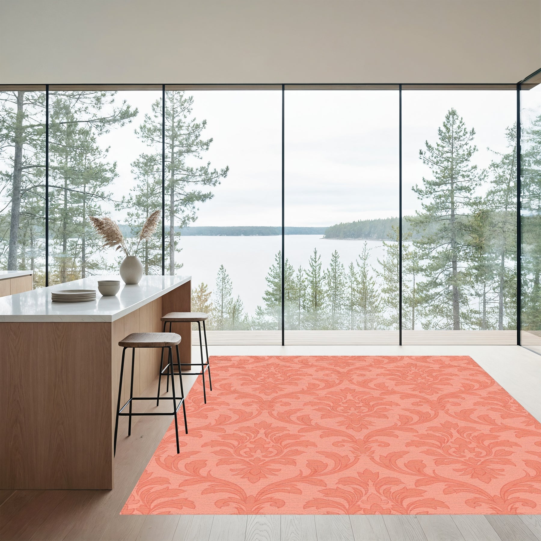Flatwoven High Traffic Area Rug, Coral Damask Scrollwork Lace Rug, Non Slip, Stain Resistant, Washable Area Rugs for Living Room, Bedroom Overview: