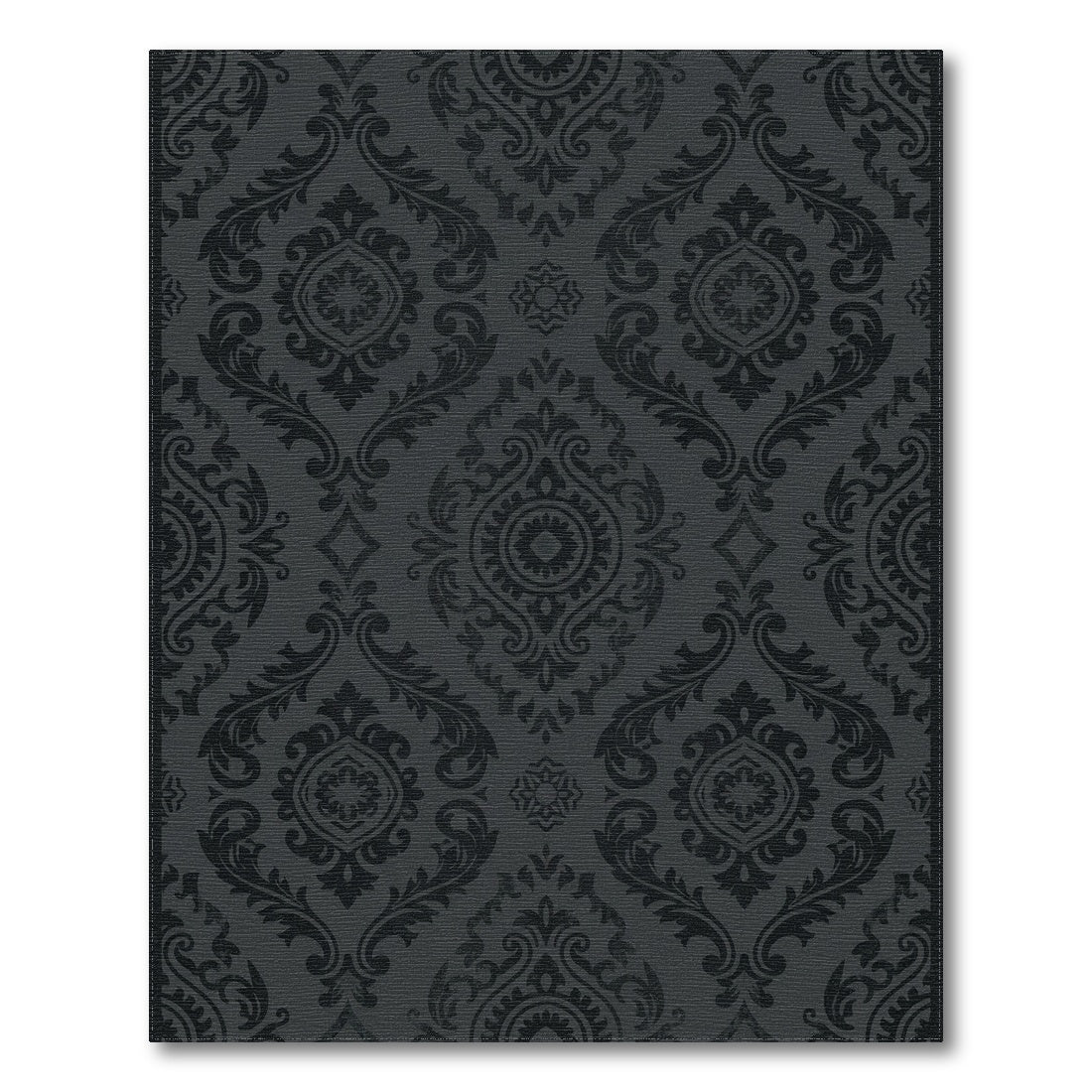 Flatwoven High Traffic Area Rug, Dark Charcoal Damask Ornament Rug, Non Slip, Stain Resistant, Washable Area Rugs for Living Room, Bedroom Overview: