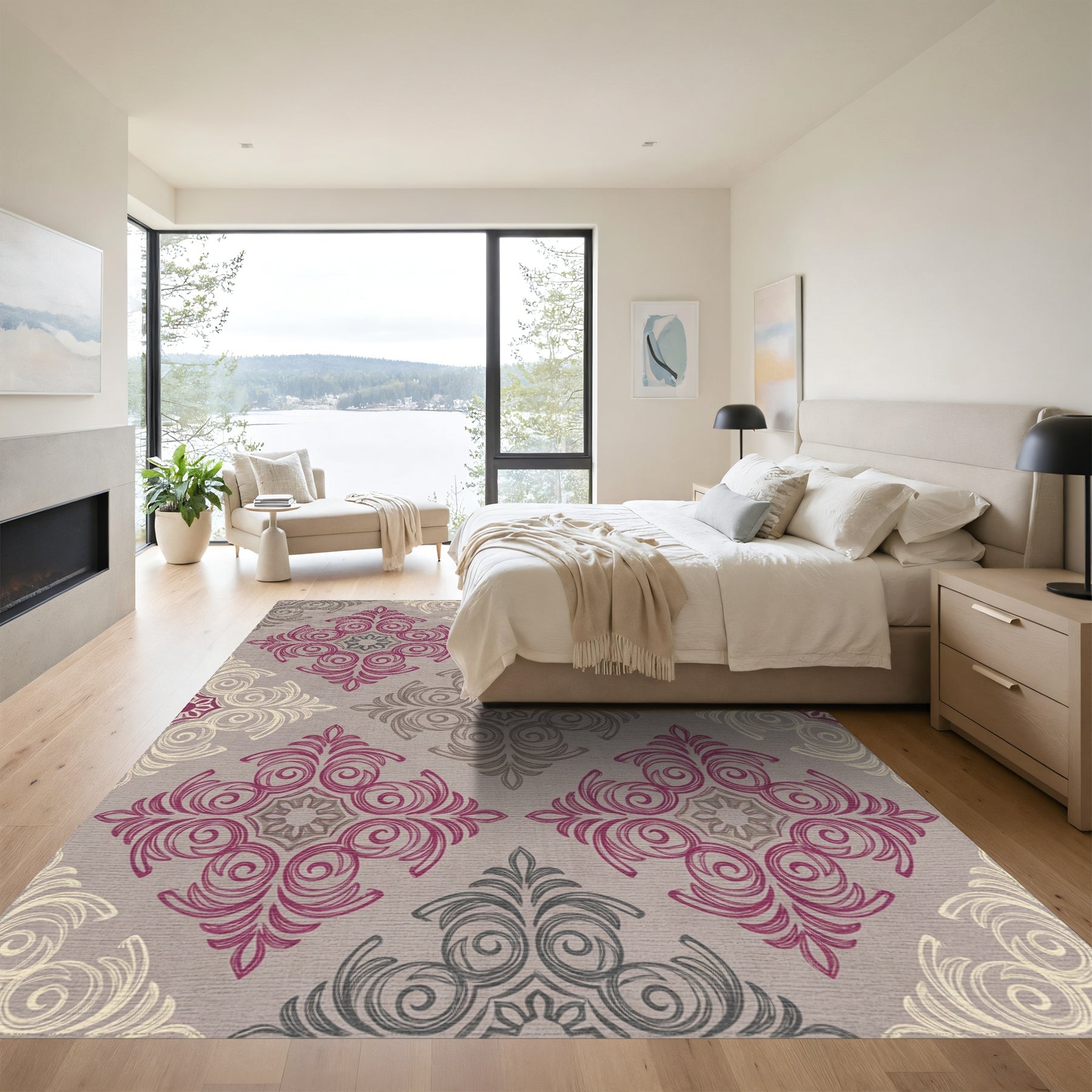 Flatwoven High Traffic Area Rug, Ornate Pink Gray Cream Medallion Rug, Non Slip, Stain Resistant, Washable Area Rugs for Living Room, Bedroom Overview: