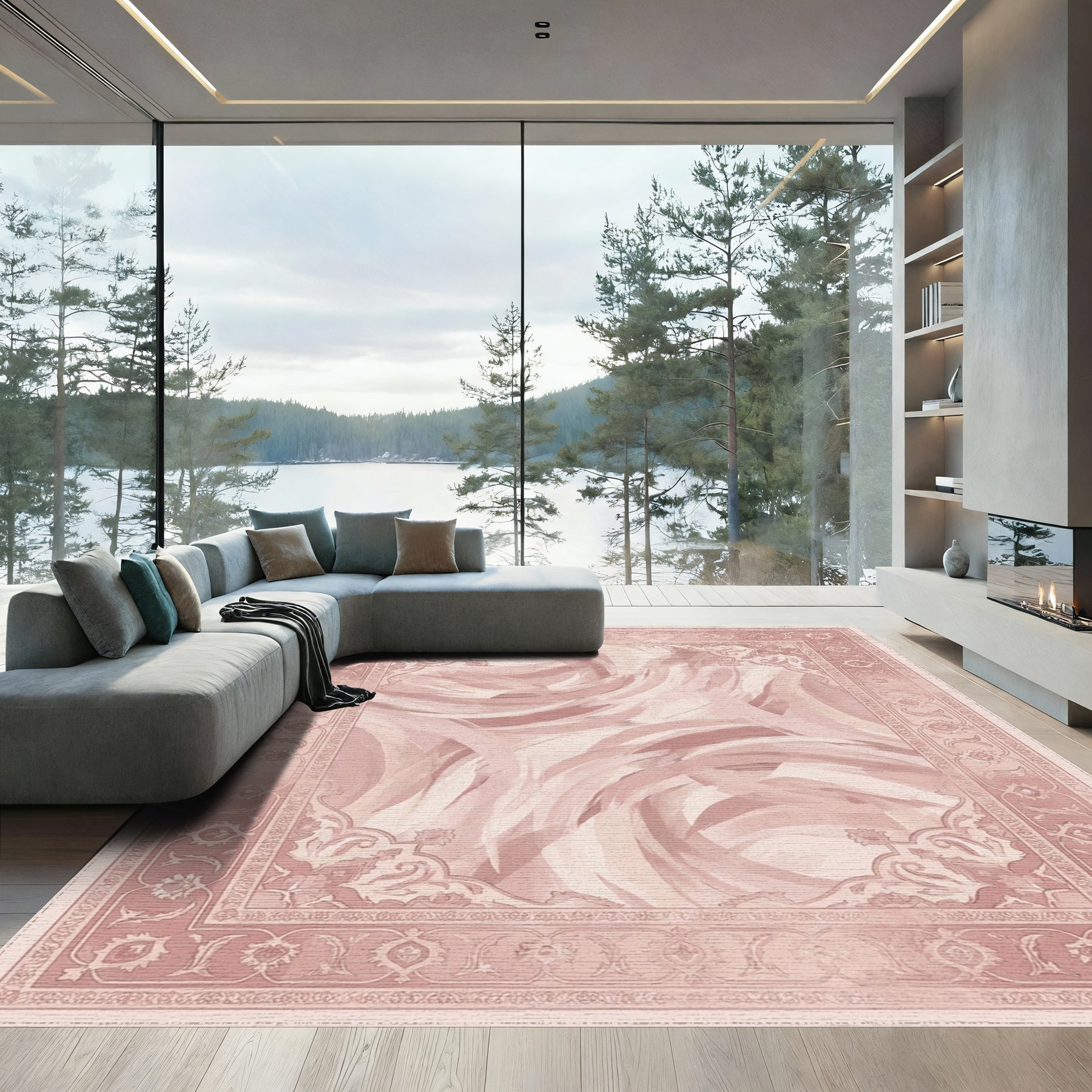 Flatwoven High Traffic Area Rug, Rose Swirl Borders Abstract Rug, Non Slip, Stain Resistant, Washable Area Rugs for Living Room, Bedroom Overview: