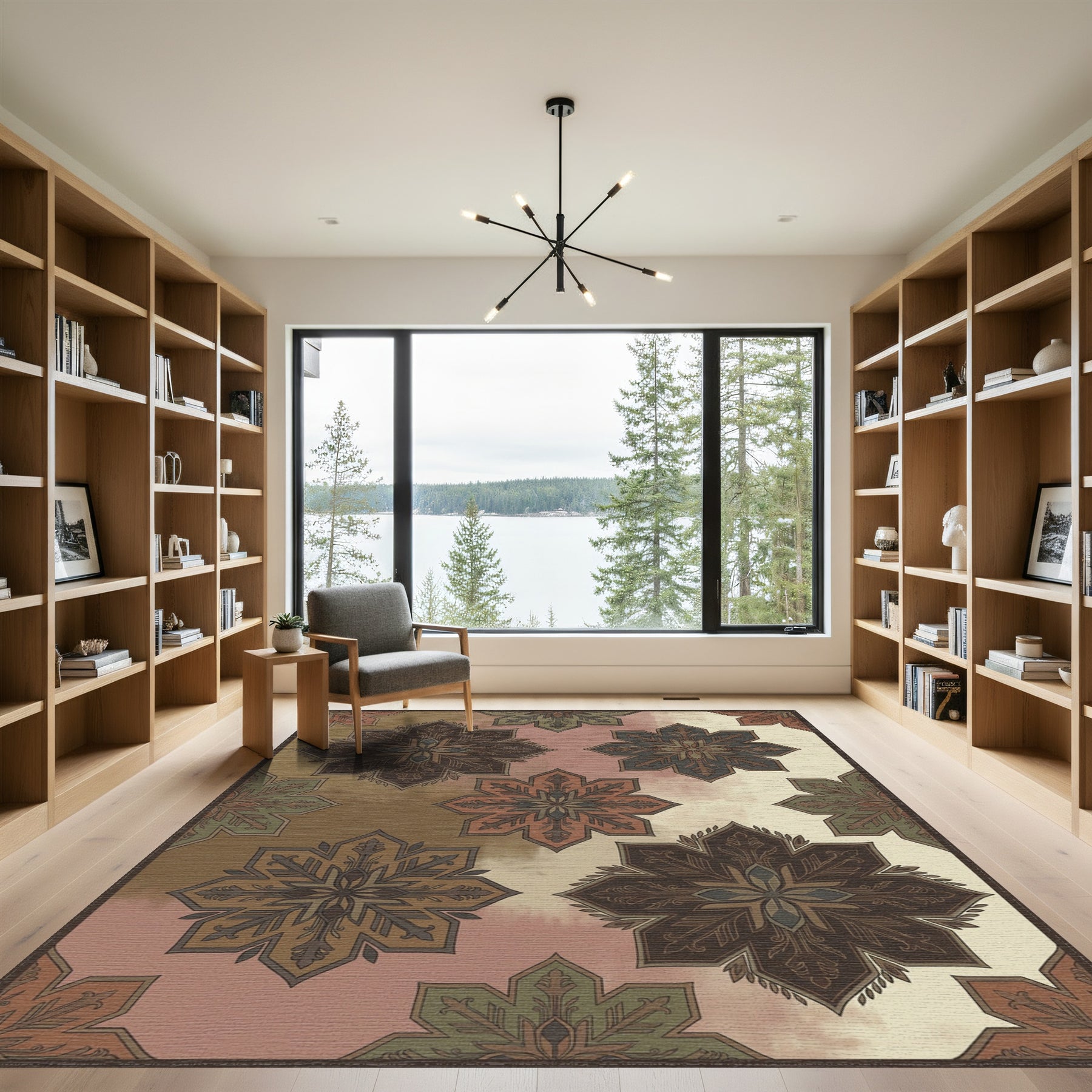 Flatwoven High Traffic Area Rug, Earthy Tones Starburst Medallion Rug, Non Slip, Stain Resistant, Washable Area Rugs for Living Room, Bedroom Overview: