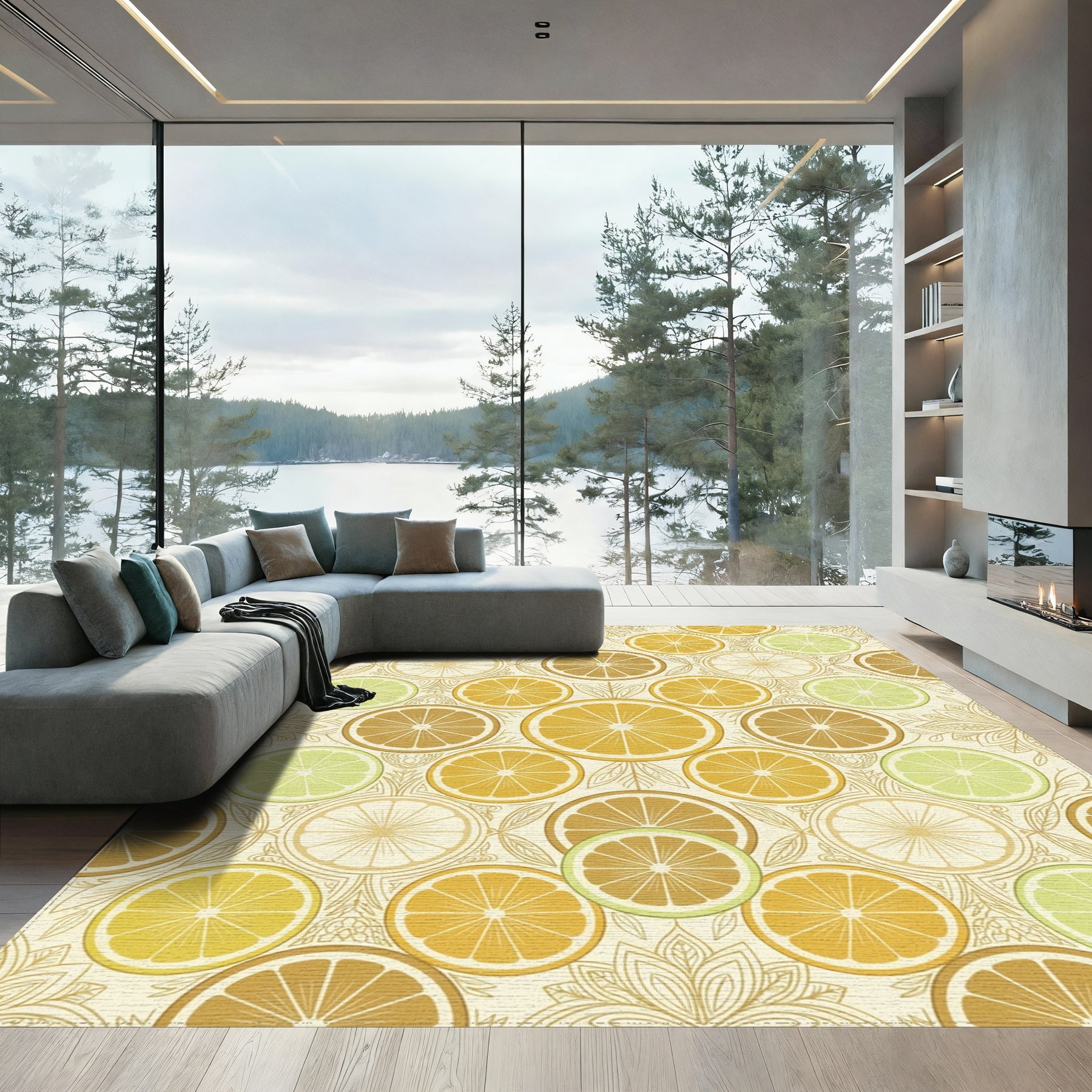 Flatwoven High Traffic Area Rug, Citrus Slice Medallion Mandala Rug, Non Slip, Stain Resistant, Washable Area Rugs for Living Room, Bedroom Overview:
