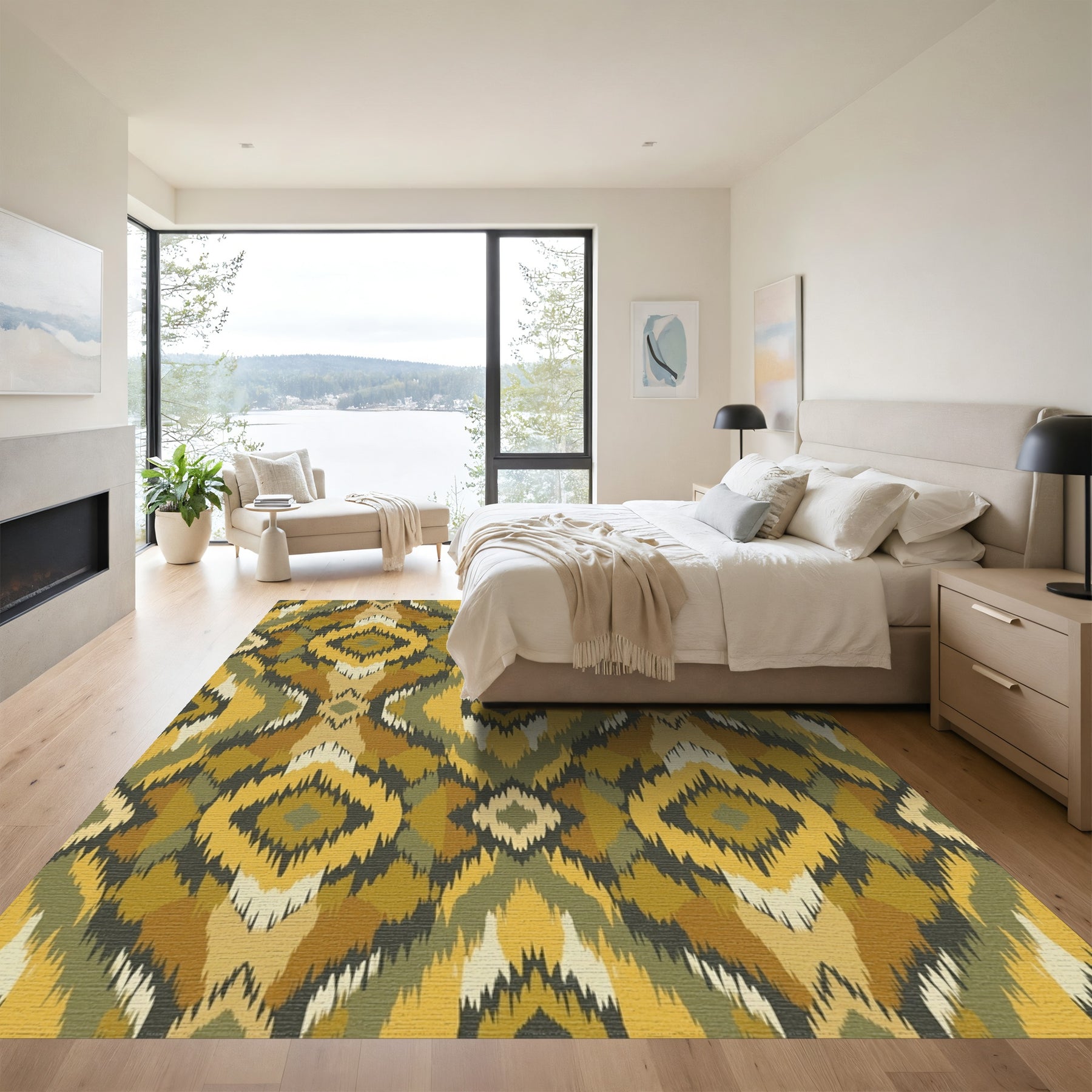 Flatwoven High Traffic Area Rug, Earthy Ochre Diamond Tribal Rug, Non Slip, Stain Resistant, Washable Area Rugs for Living Room, Bedroom Overview: