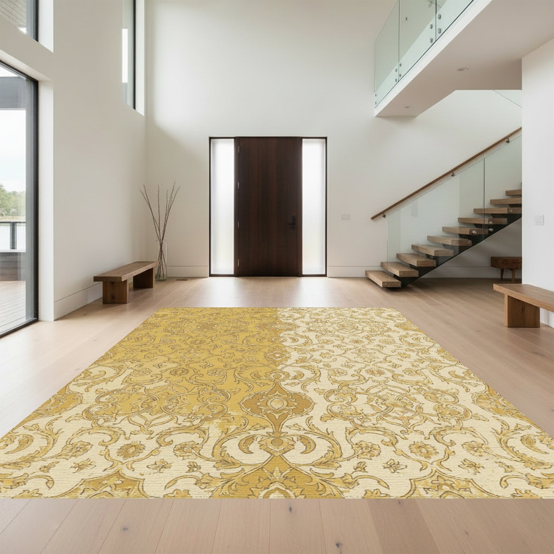 Flatwoven High Traffic Area Rug, Golden Laurel Arch Medallion Rug, Non Slip, Stain Resistant, Washable Area Rugs for Living Room, Bedroom Overview: