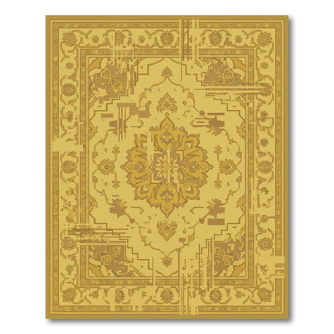 Flatwoven High Traffic Area Rug, Golden Ochre Glitched Medallion Rug, Non Slip, Stain Resistant, Washable Area Rugs for Living Room, Bedroom Overview: