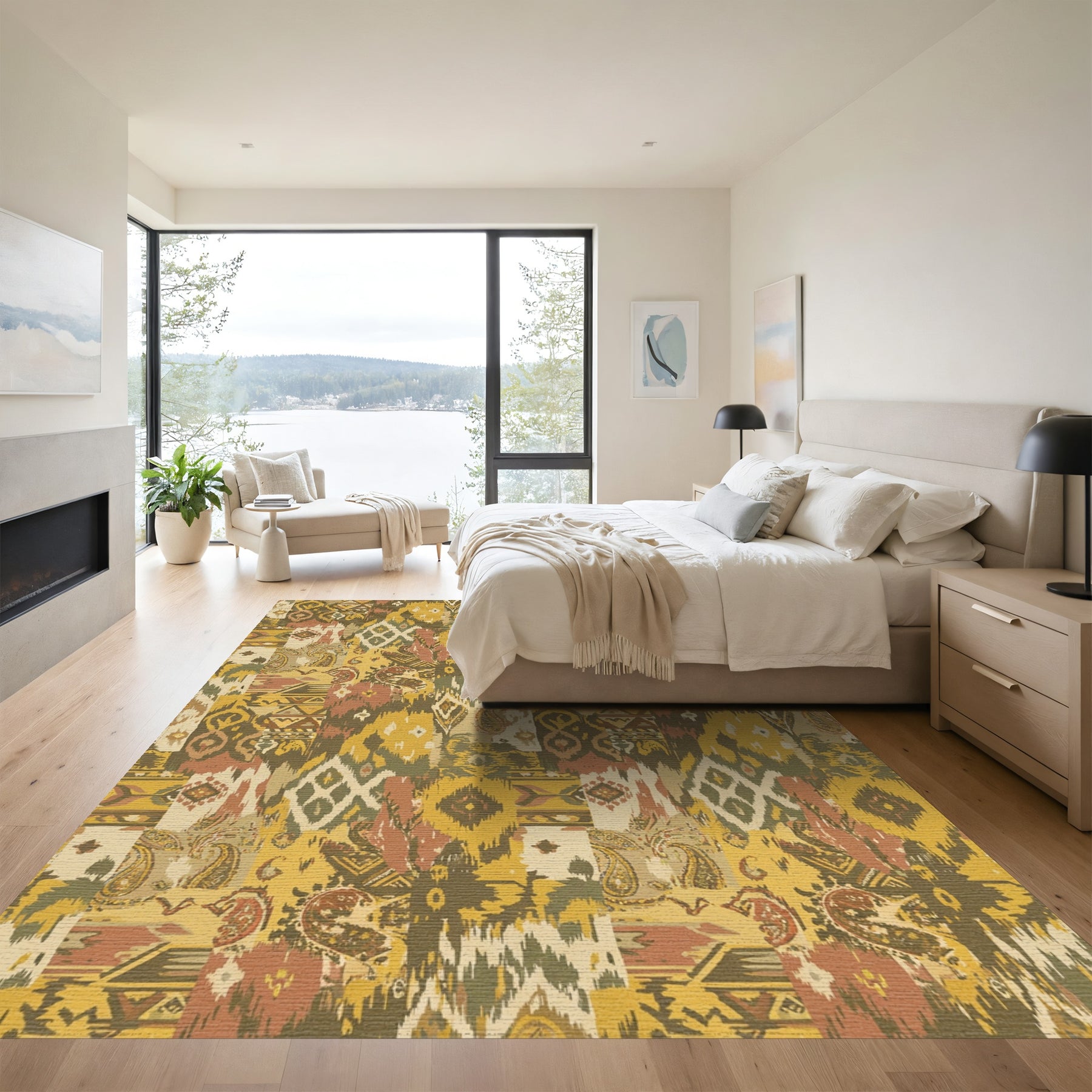 • Modern, artistic: Add a piece of modern charm to your bedroom collection. Designed with the art of minimalism, this rug is sure to provide your bedroom with coziness.