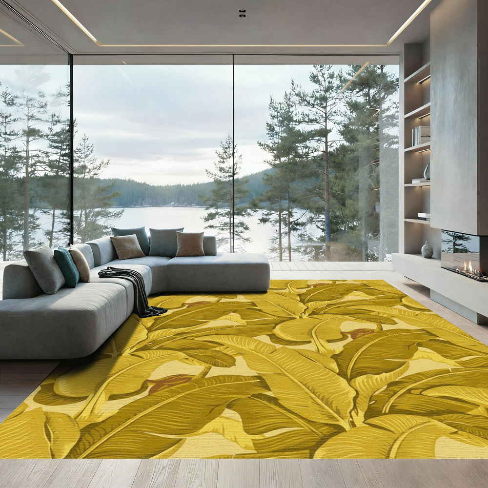 Golden Banana Leaf Tropical Arrangement Rug