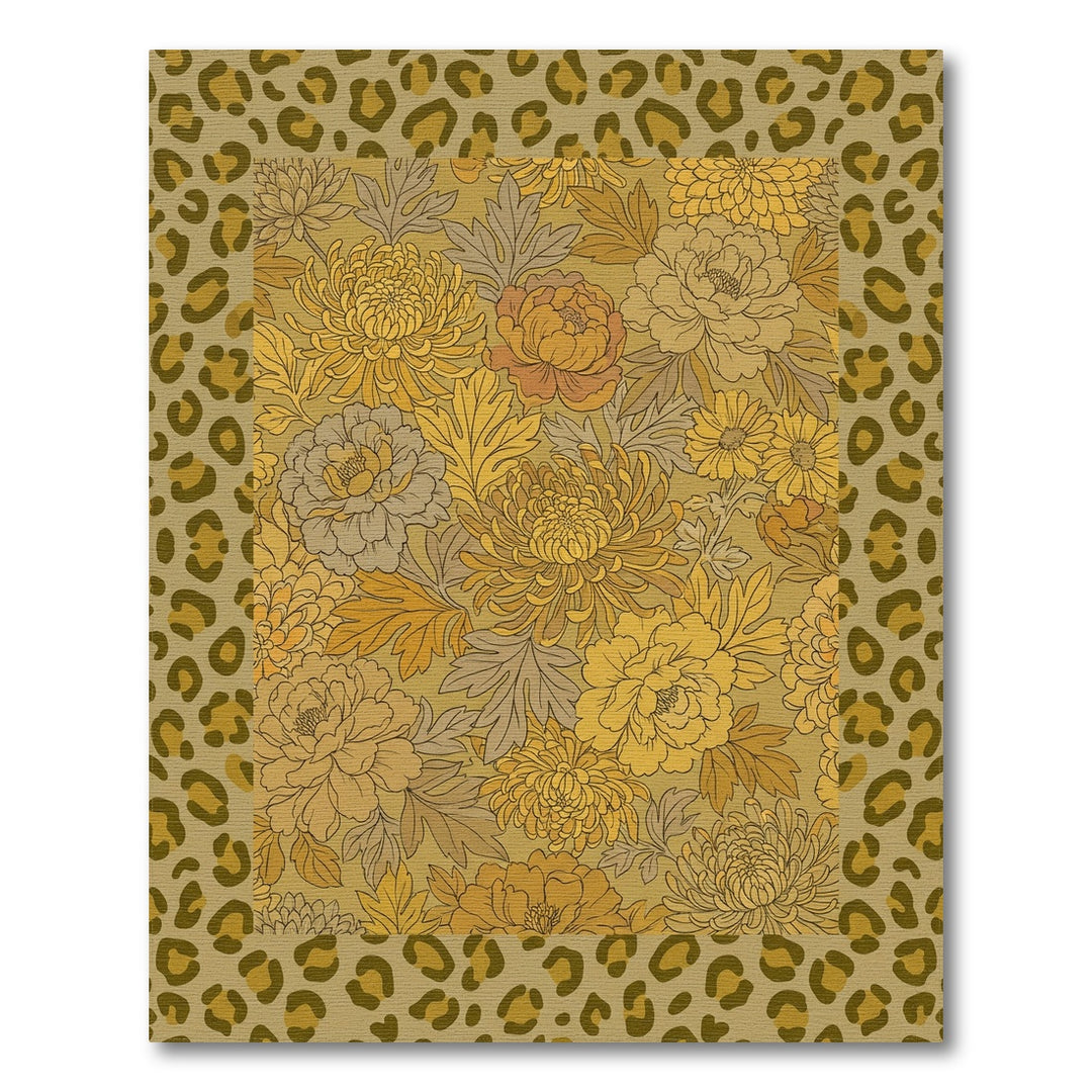 Golden Floral Leopard Border Rug