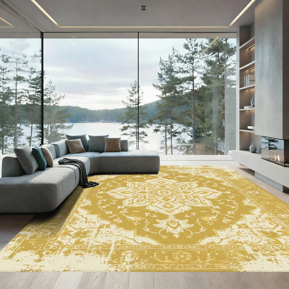 Golden Ochre Vintage Floral Medallion Rug
