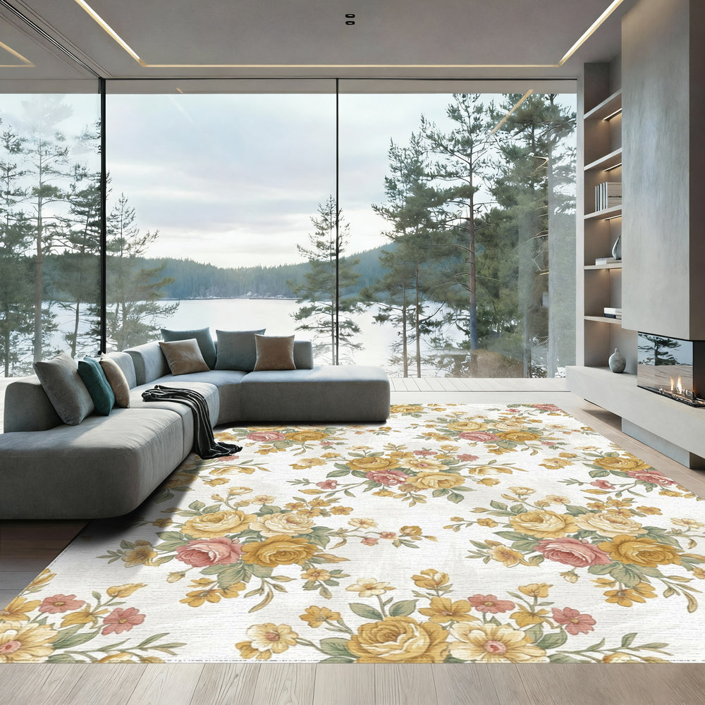 Vintage Meadow Floral Arrangement Rug
