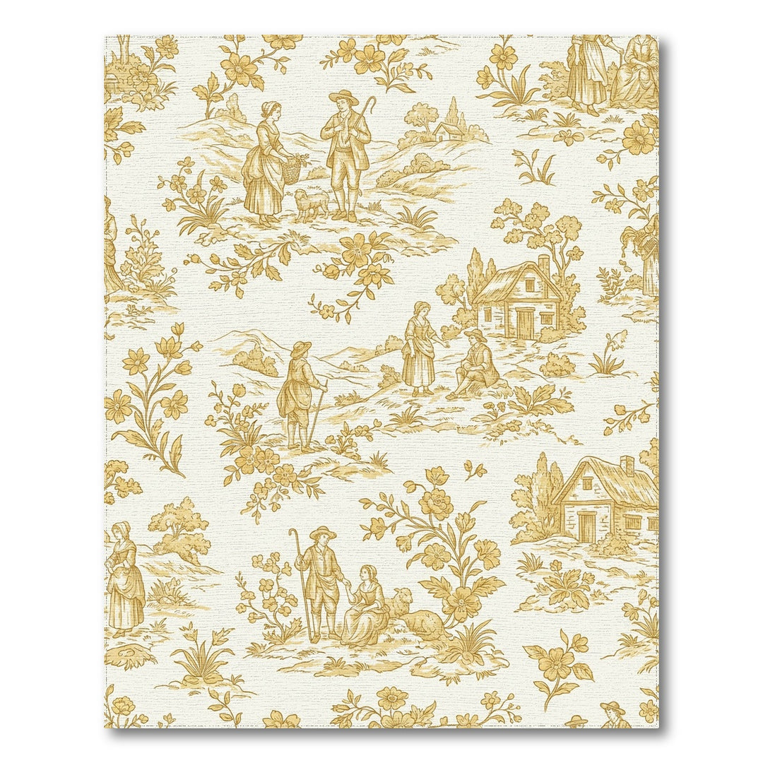 Vintage Ochre Pastoral Village Scene Rug