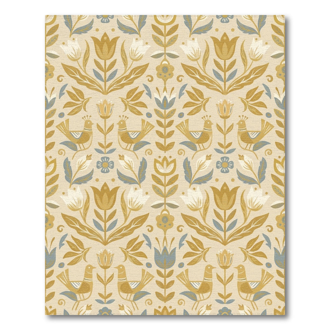 Golden Bird Floral Folk Art Rug