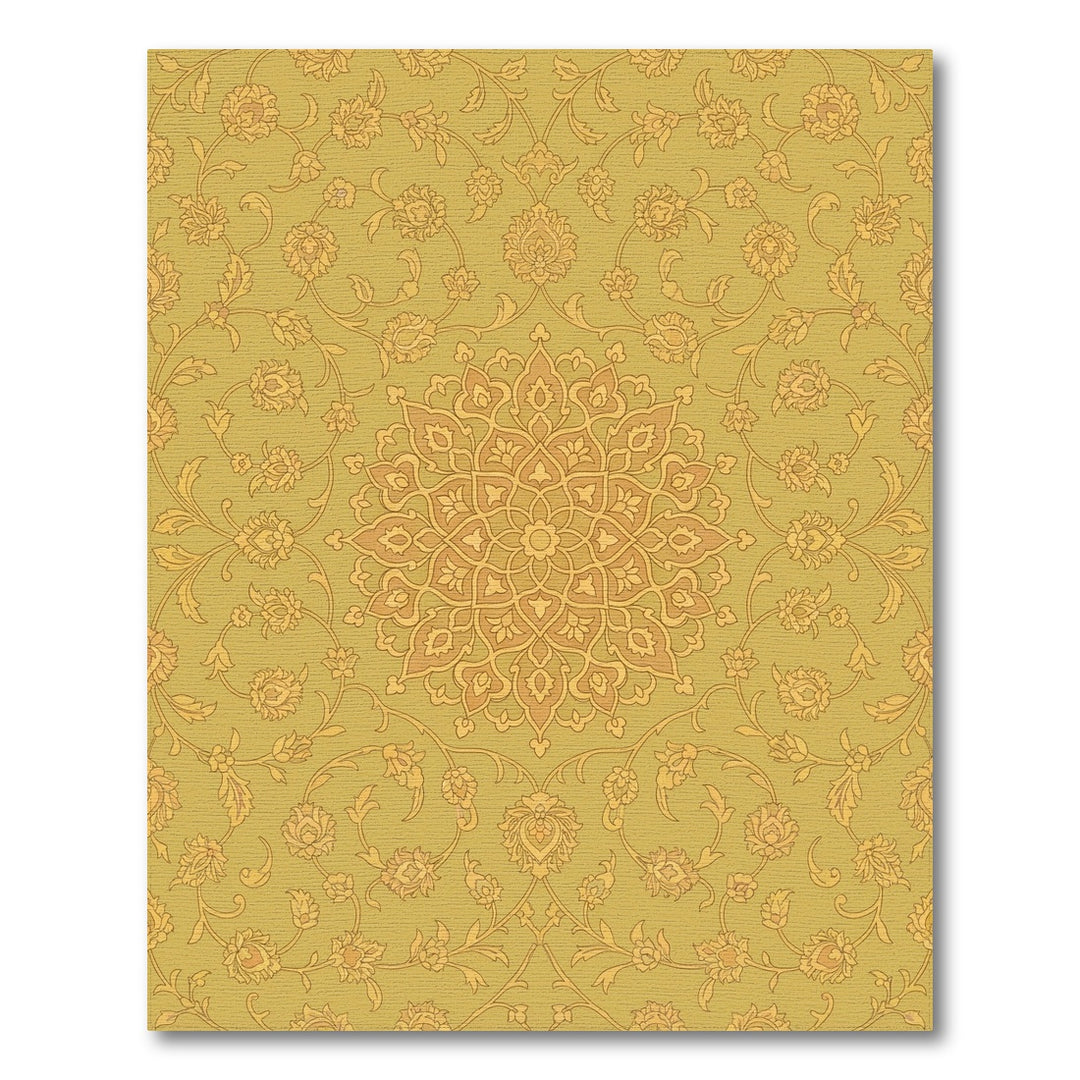 Golden Ochre Floral Medallion Vines Rug