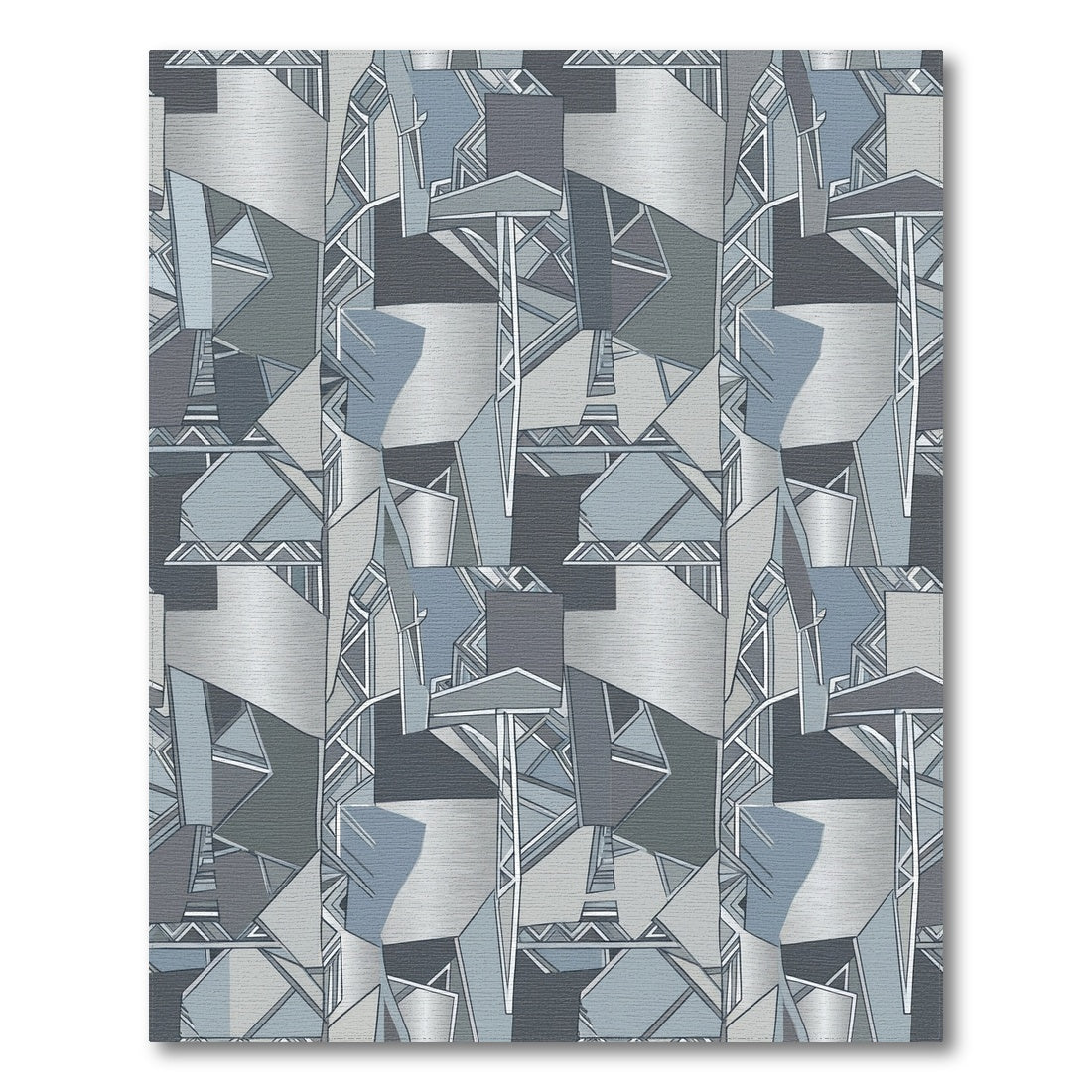 Flatwoven High Traffic Area Rug, Abstract Geometric Steel Gray Shapes Rug, Non Slip, Stain Resistant, Washable Area Rugs for Living Room, Bedroom Overview: