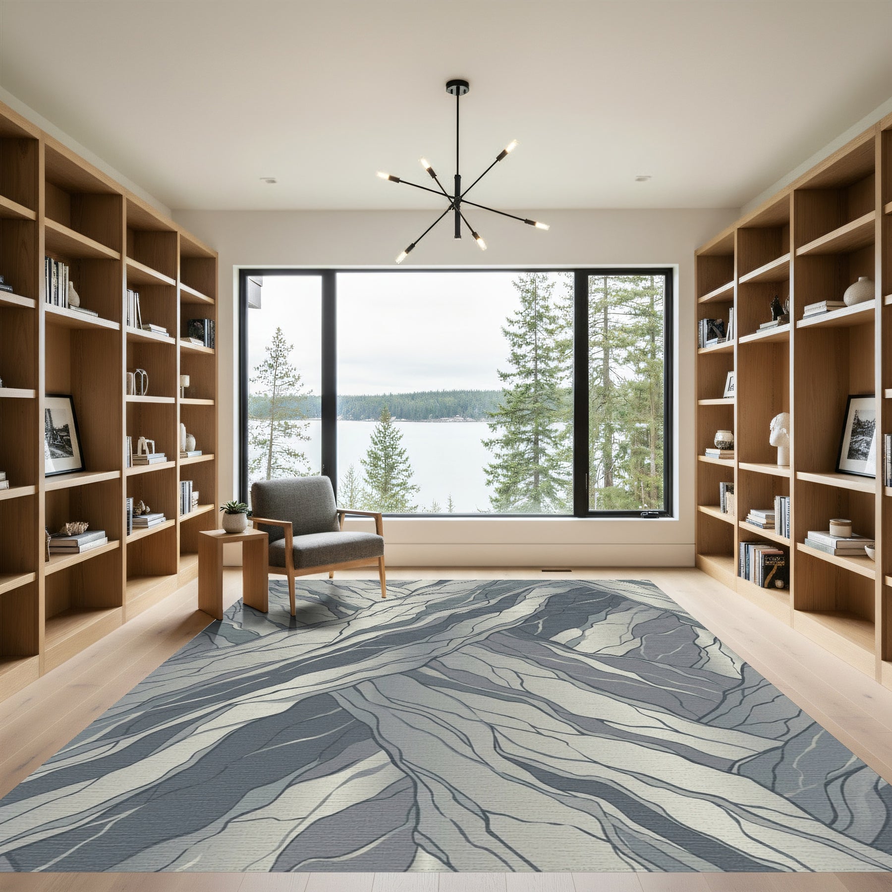 Flatwoven High Traffic Area Rug, Abstract Gray Swirling Lines Rug, Non Slip, Stain Resistant, Washable Area Rugs for Living Room, Bedroom Overview: