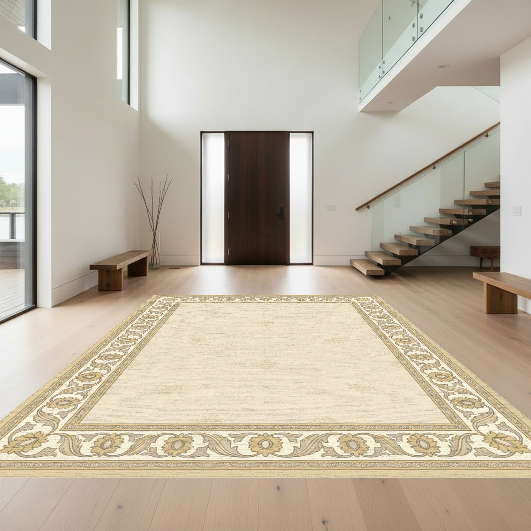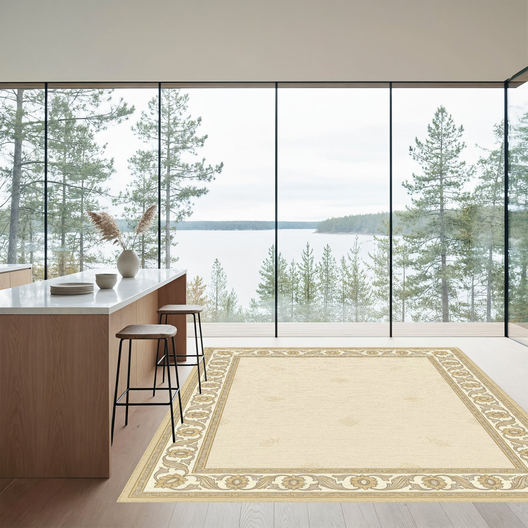 Flatwoven High Traffic Area Rug, Antique Cream Floral Border Rug, Non Slip, Stain Resistant, Washable Area Rugs for Living Room, Bedroom Overview: